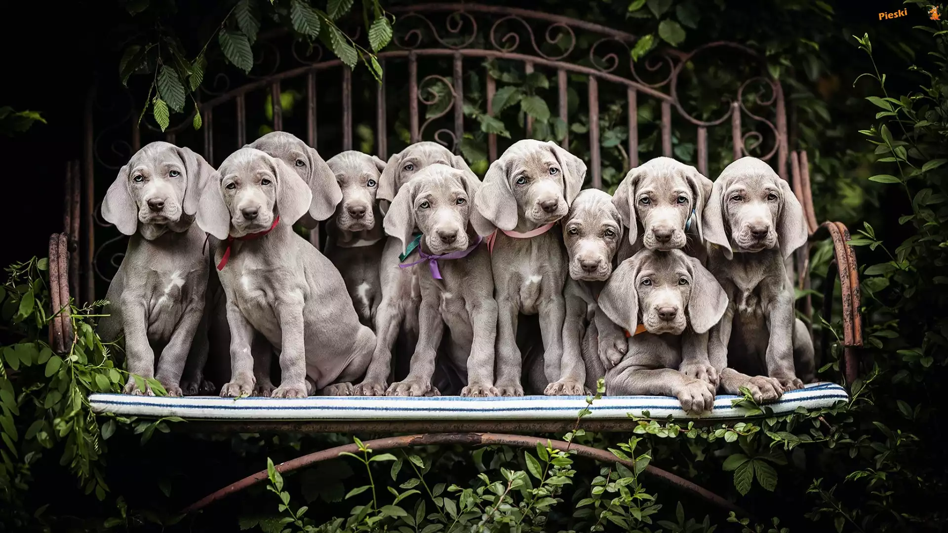 Ławka, Szczeniak, Pies, Wyżeł weimarski krótkowłosy, Krzewy, Pieski