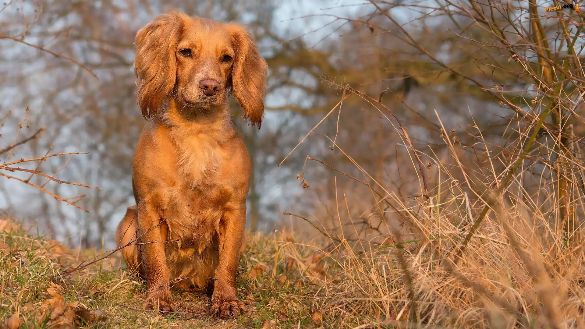 Brązowy, Suche, Uszy, Pies, Długie, Trawy