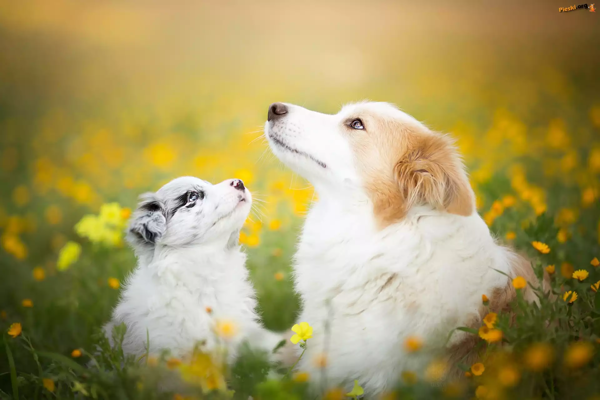 Łąka, Psy, Border collie, Kwiaty, Pieski