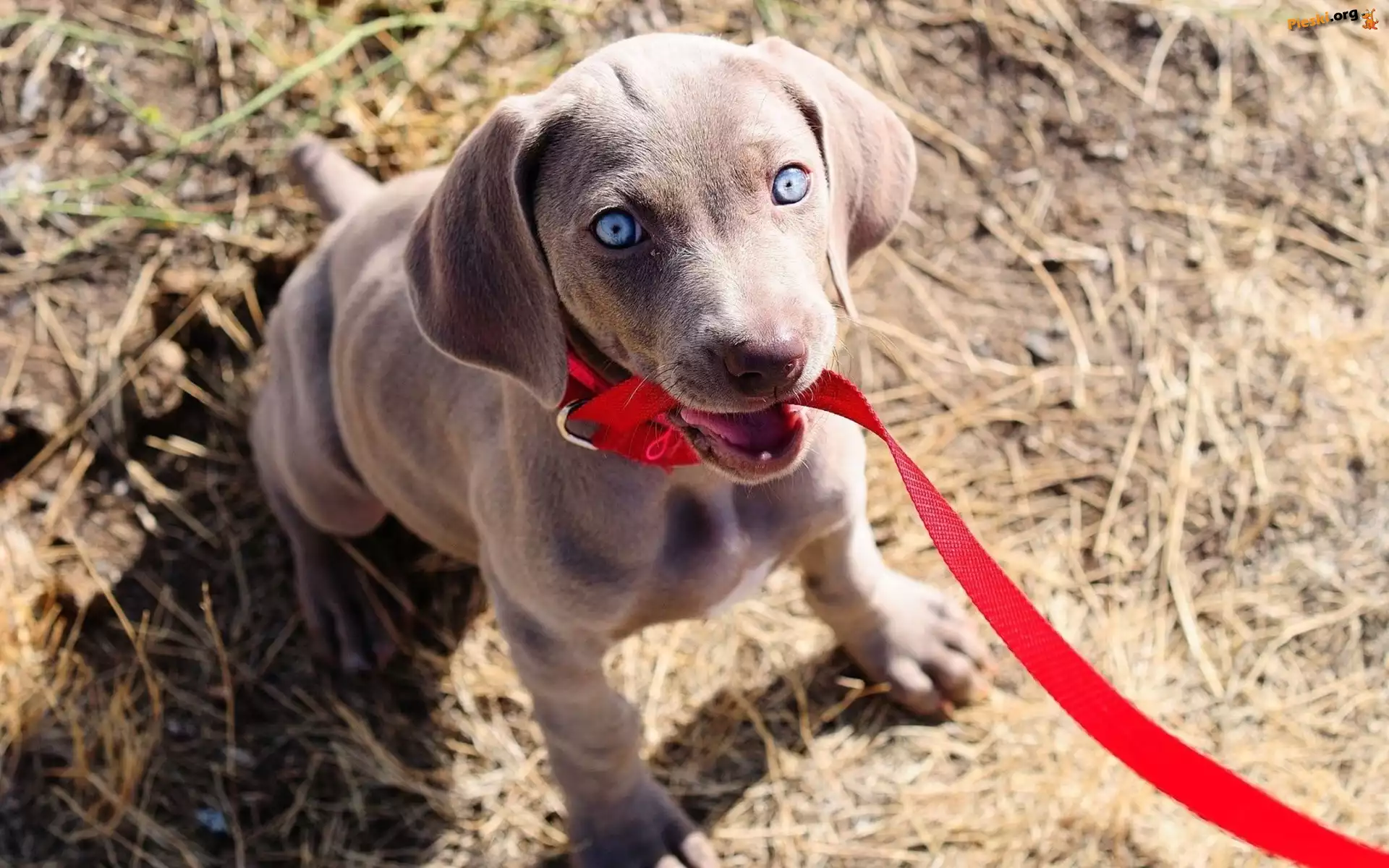 Smycz, Piesek, Czerwona, Wyżeł weimarski, Pieski