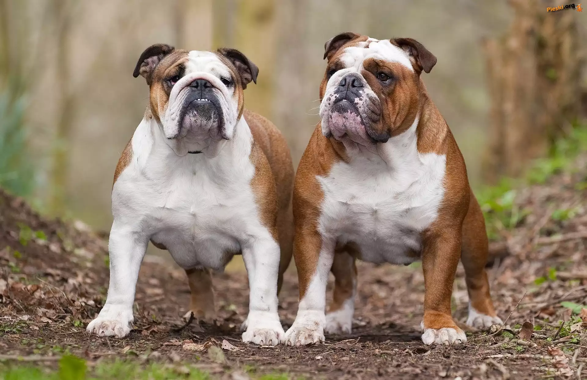 Dwa, Dorosłe, Buldogi, Pieski