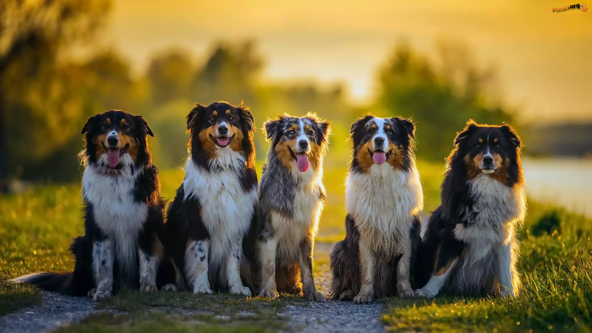 Psy, Droga, Owczarki australijskie, Kwintet, Pięć, Trawa