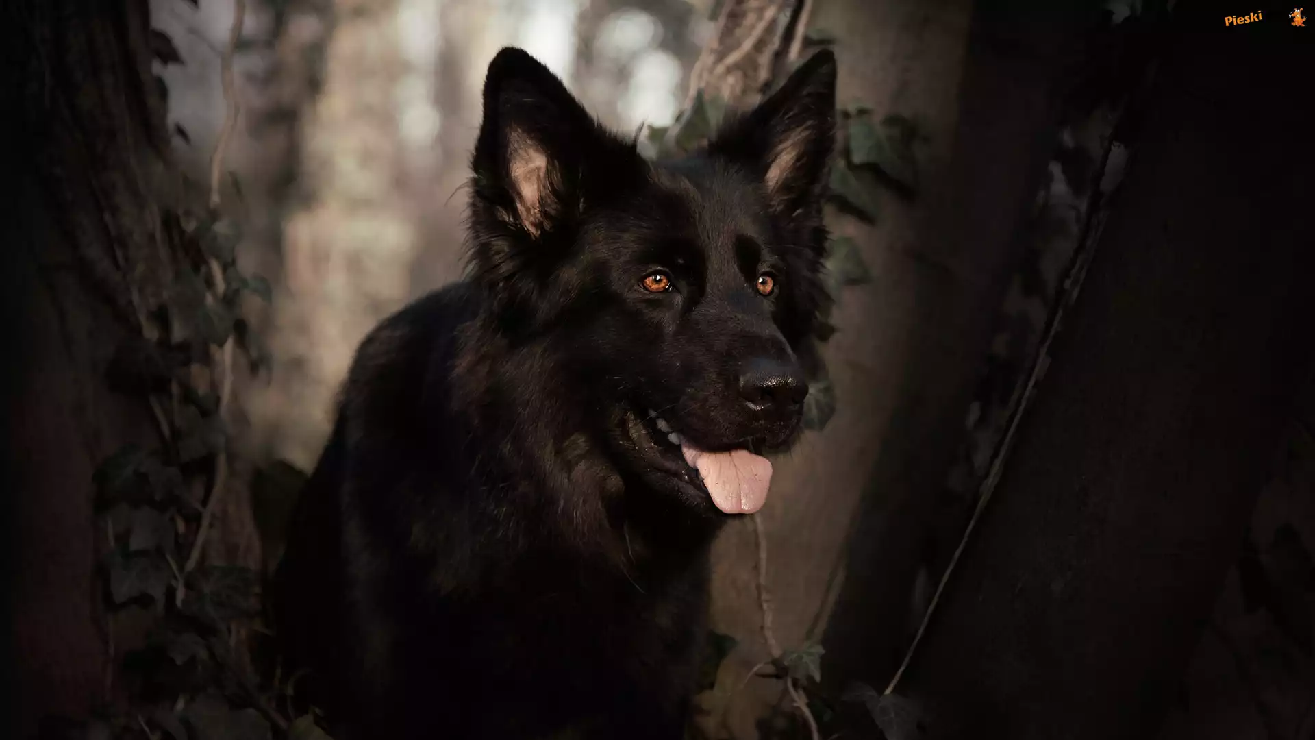 Pies, Drzewa, Język, Czarny owczarek niemiecki, Mordka, Rośliny