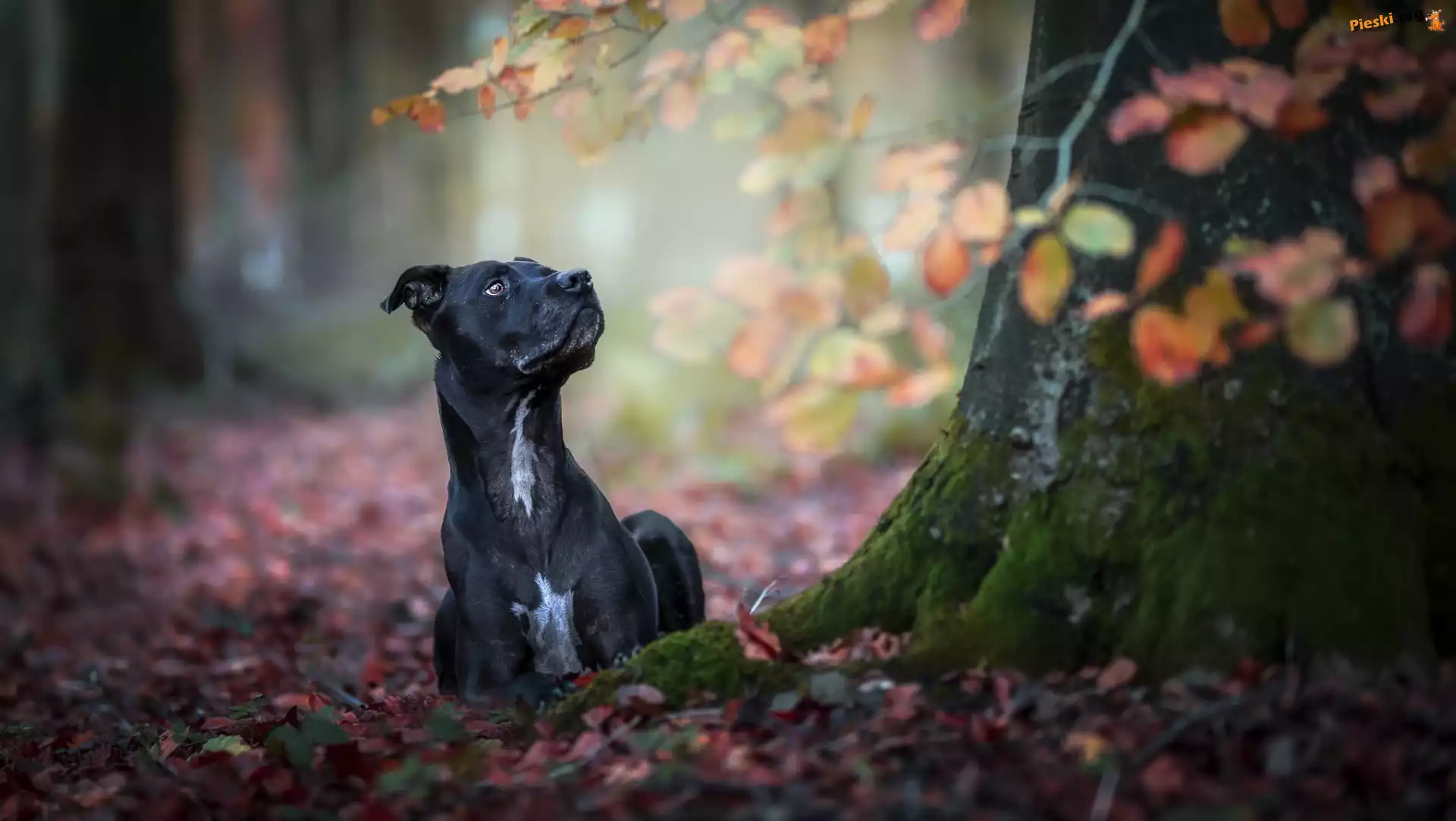 Drzewo, Czarny, Pies, Liście