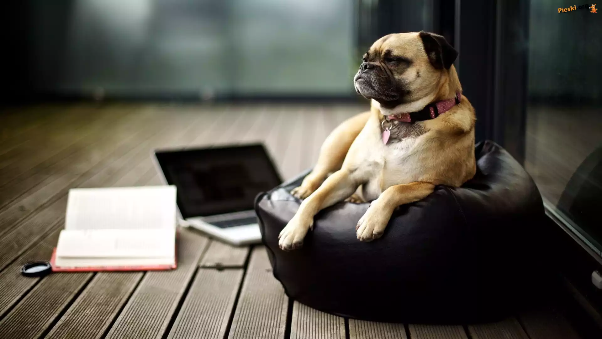 Pies, Fotel, Laptop, Pieski