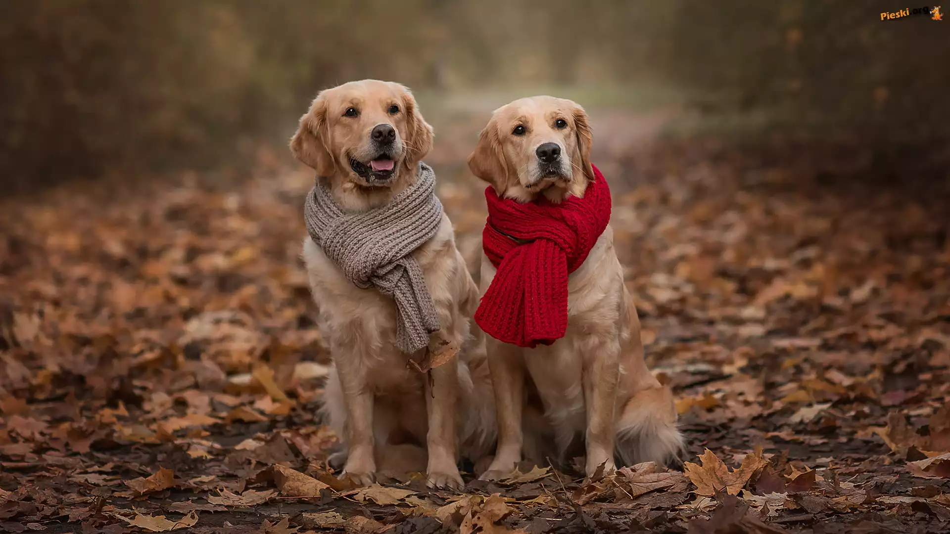 Golden retriever, Dwa, Psy, Szaliki