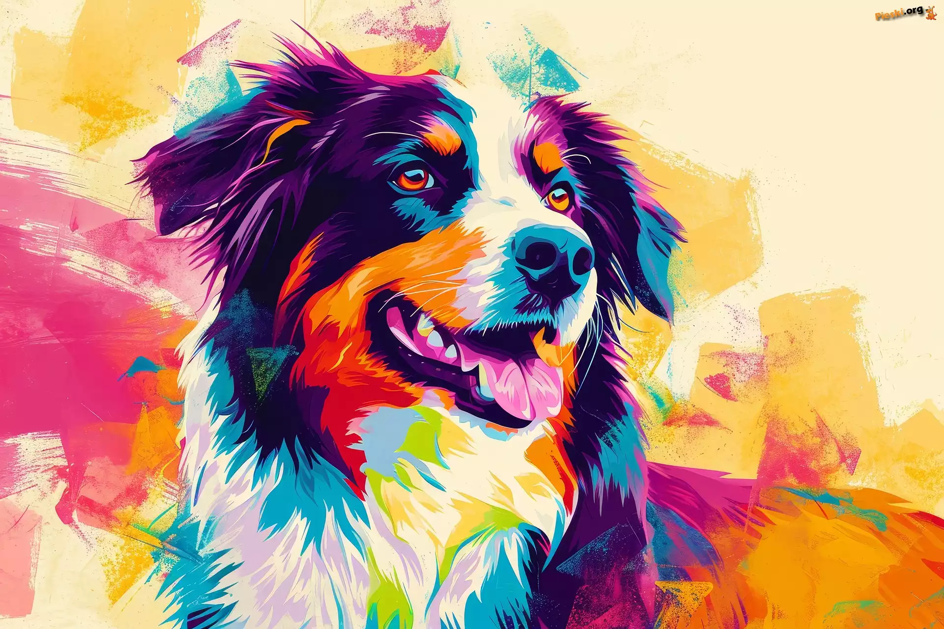 Grafika, Kolorowa, Pies, Pieski