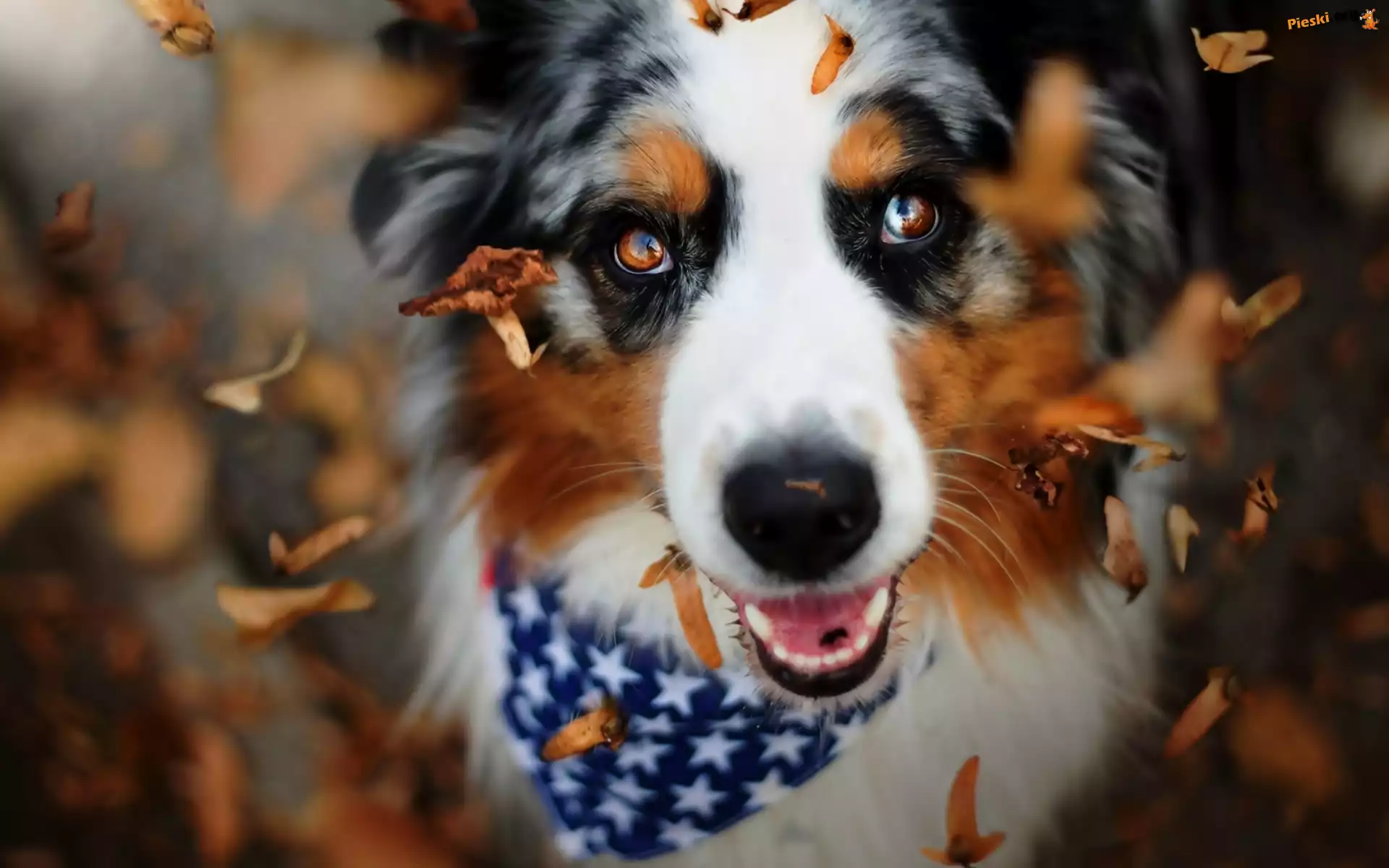 Pies, Jesienne, Liście, Pieski