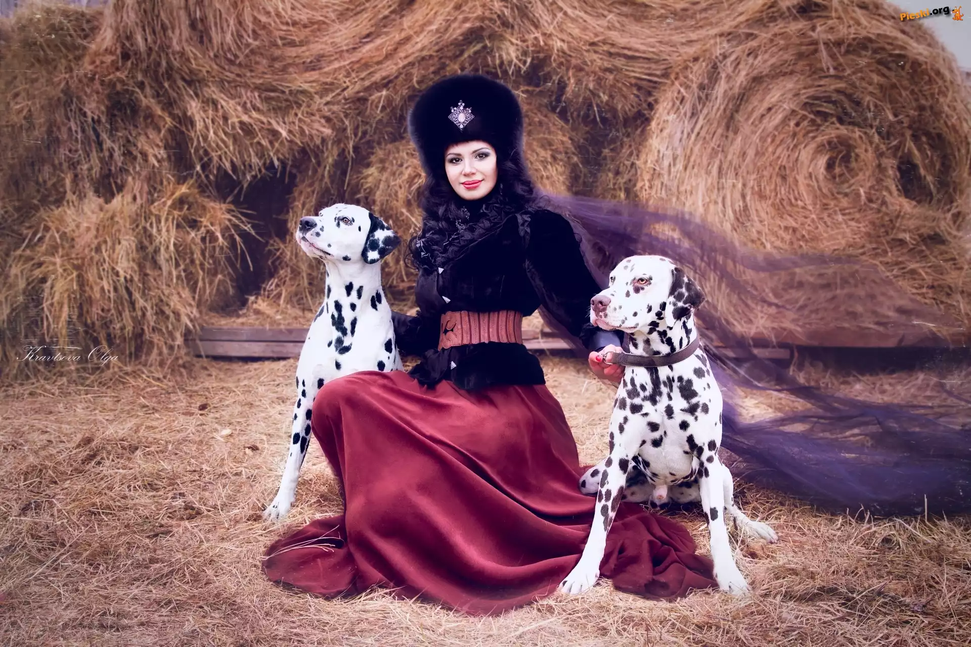 Kobieta, Dalmatyńczyki, Pieski
