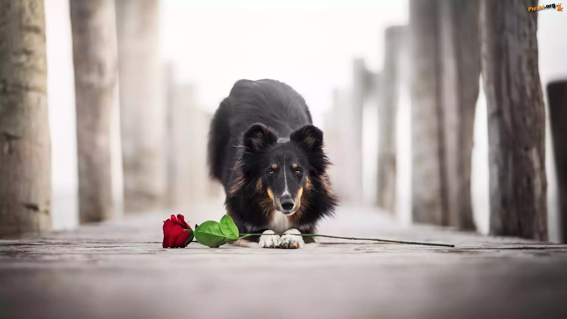 Kwiat, Pies, Owczarek szetlandzki, Róża