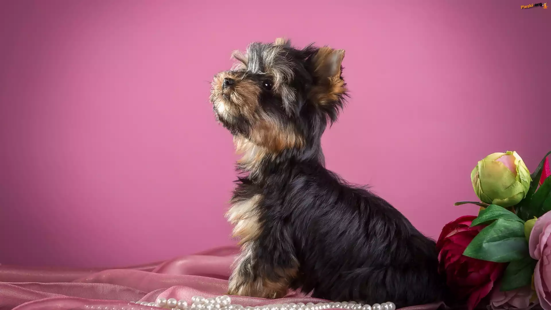 Kwiaty, Słodki, Yorkshire terrier, Perły