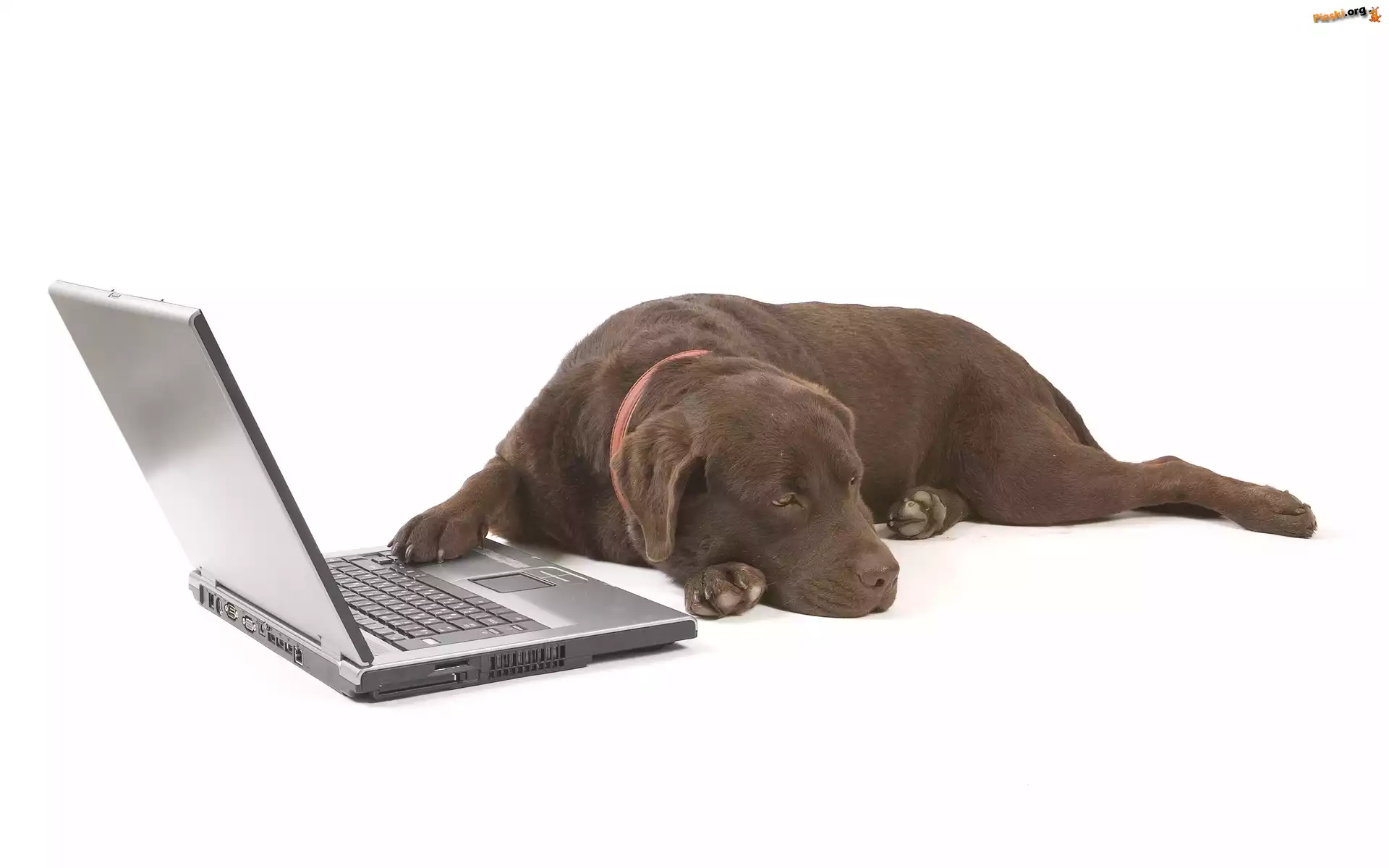 Brązowy, Labrador, Laptop