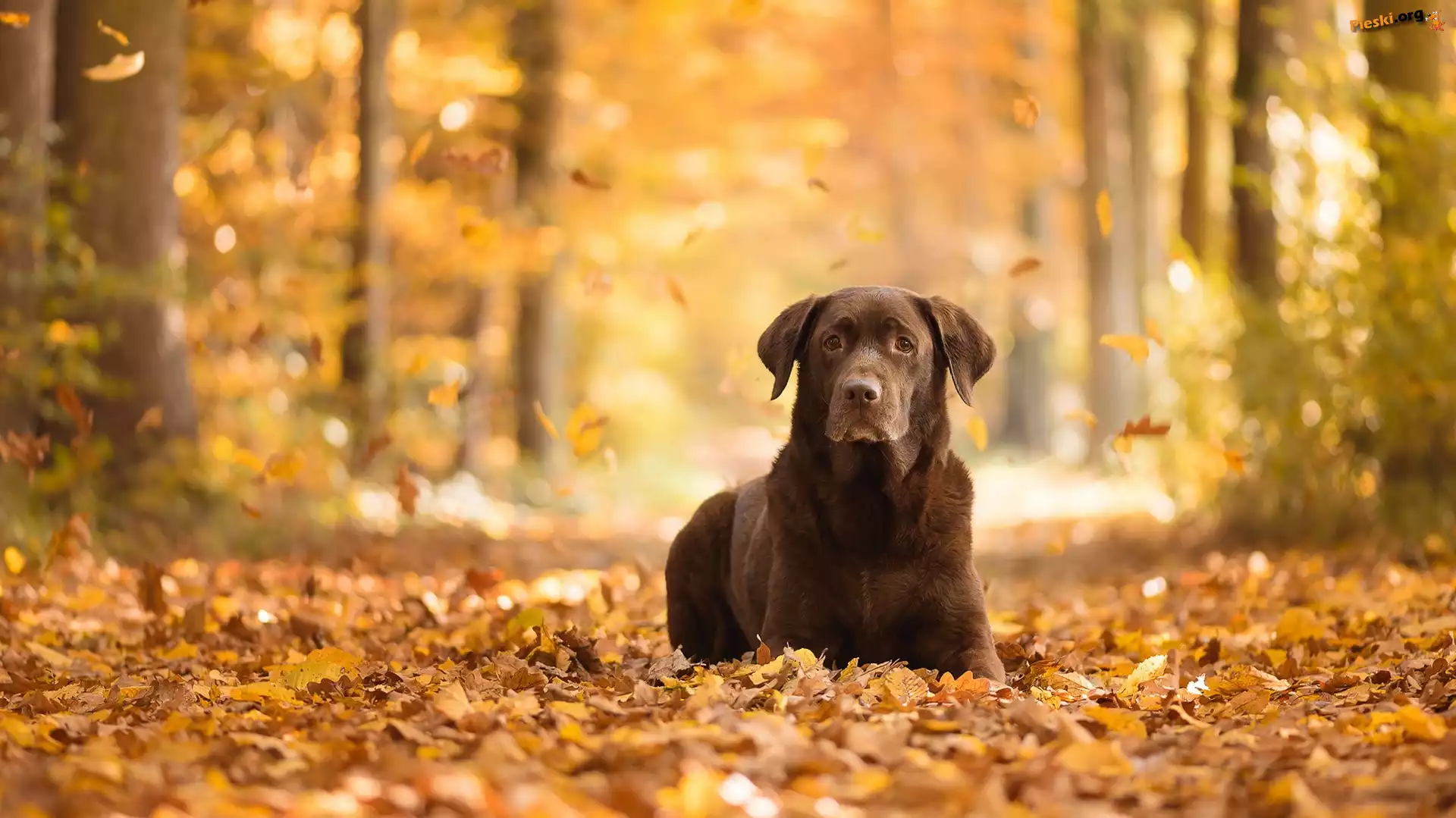 Labrador retriever, Las, Liście, Pieski