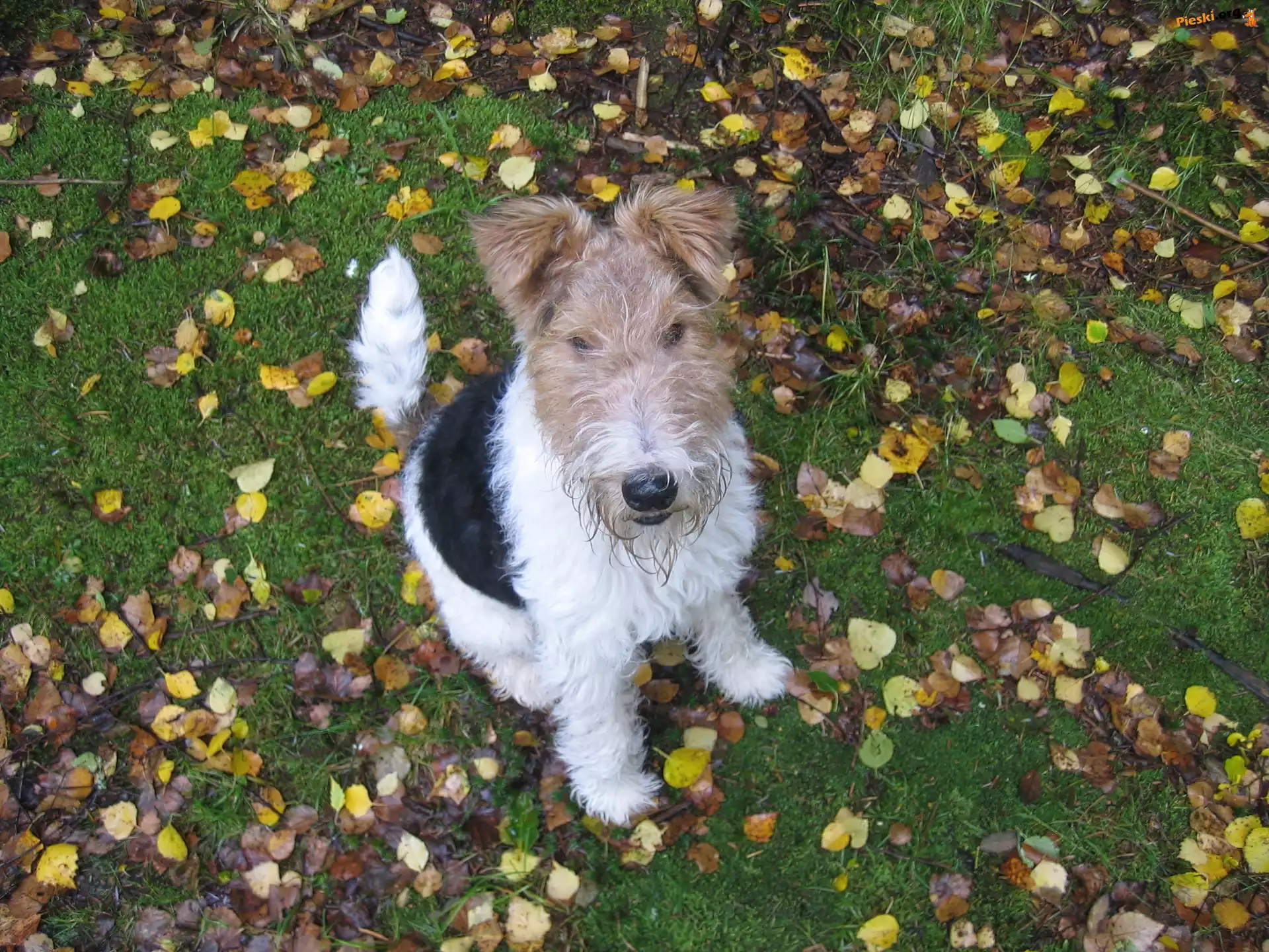 Terier Lakeland Lakeland Terrier, Liście, Trawa umaszczenie, pszeniczne, Lakeland Terrier