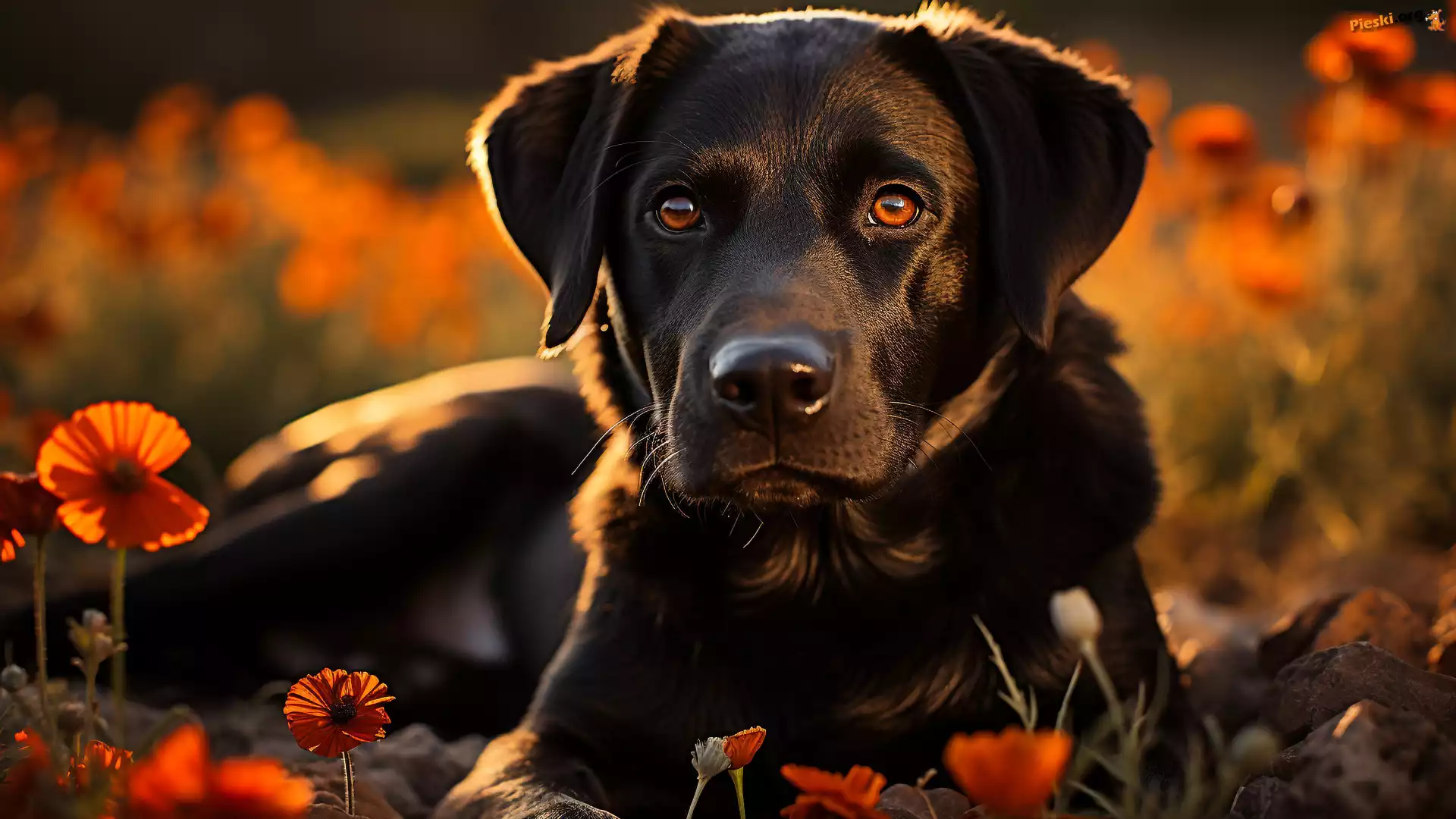 Mordka, Maki, Pies, Kwiaty, Czarny