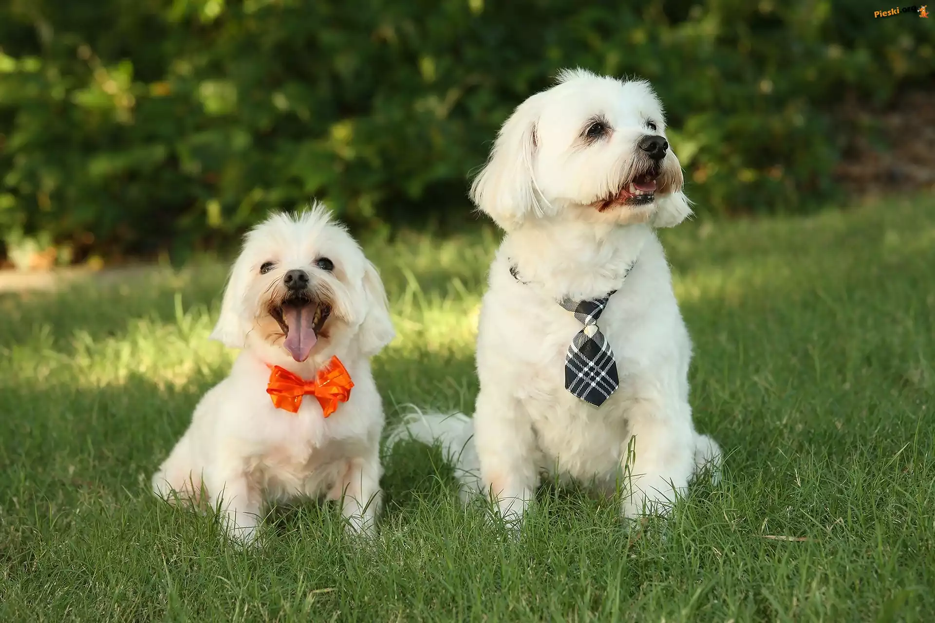 Łąka, Urocze, Dwa, Maltańczyki, Drzewa, Pieski