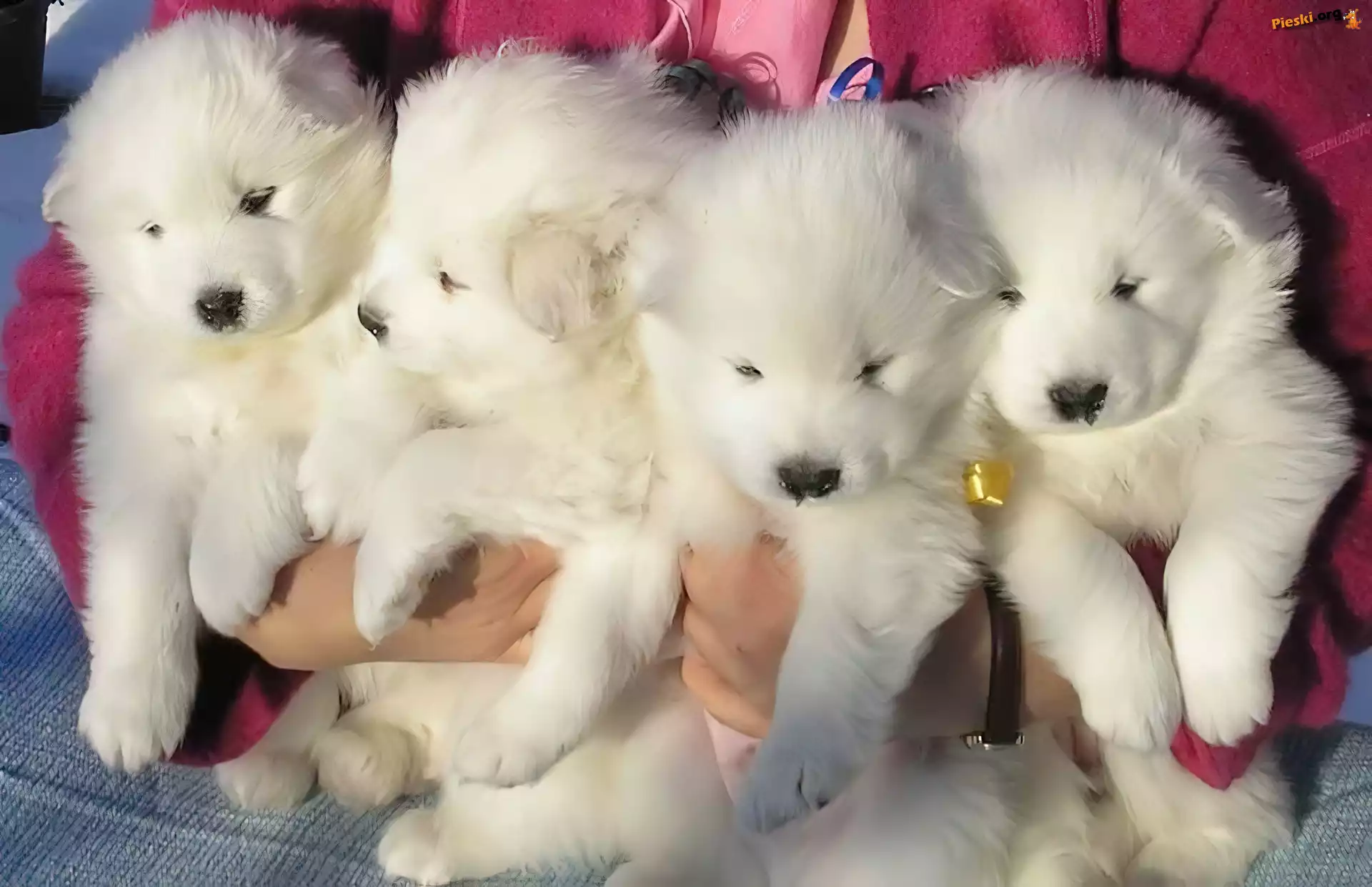 zima, Samojedy, dwa Piesek, Pluszak Samojed, Ogród Trzy, szczeniaki, Wyżła Munsterlandzkiego Dużego Beczka, Beagle, Szczeniak zielona, biały, Samojed, trawa skórzana, Mały, Owczarek amerykańsko-kanadyjski, kanapa szczeniak, West Highland White Terrier, piłka Mały, Biały Owczarek Szwajcarski, łódź Szczeniaki, Spaniel kontynentalny miniaturowy Papillon Pies, Uśmiechnięta, Kobieta, Samojed Szczeniaki, Dalmatyńczyki, Koszyk Niebieskie, Siberian Husky, Szczeniak, Oczy Słodki, szczeniak, Rottweiler
