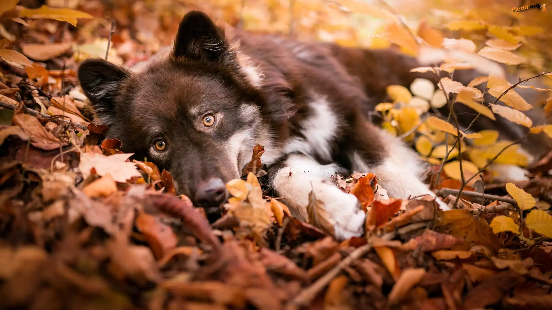 Mordka, Leżący, Pies, Liście