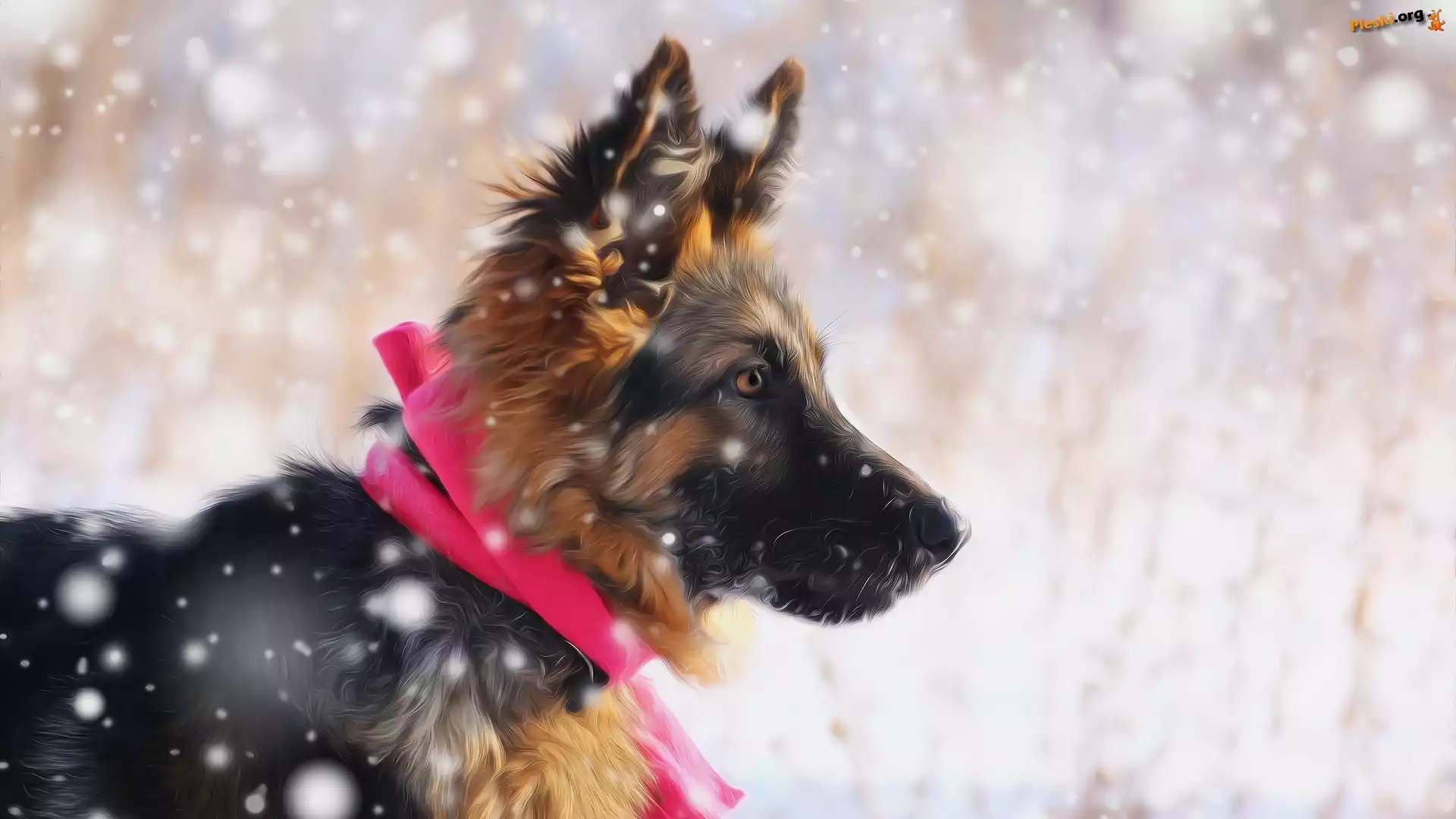 Śnieg, Szczeniak, Owczarek niemiecki, Grafika