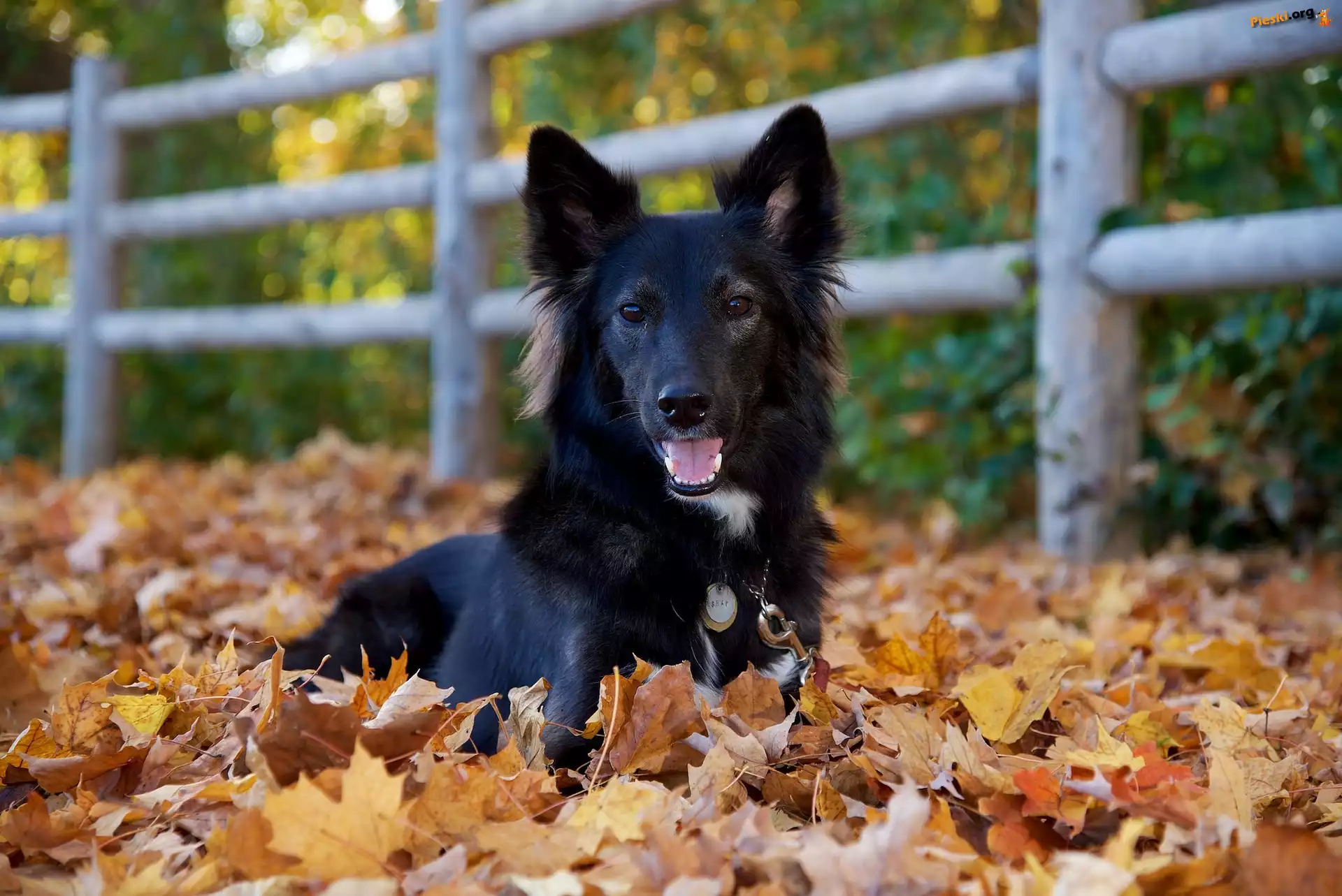 Obroża, Czarny, Piesek, Liście