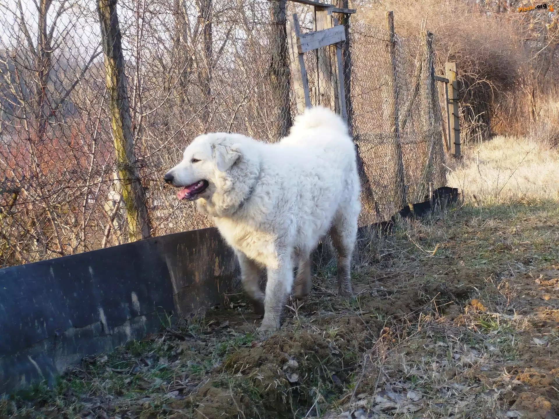 Owczarek węgierski Kuvasz, płot, Pieski