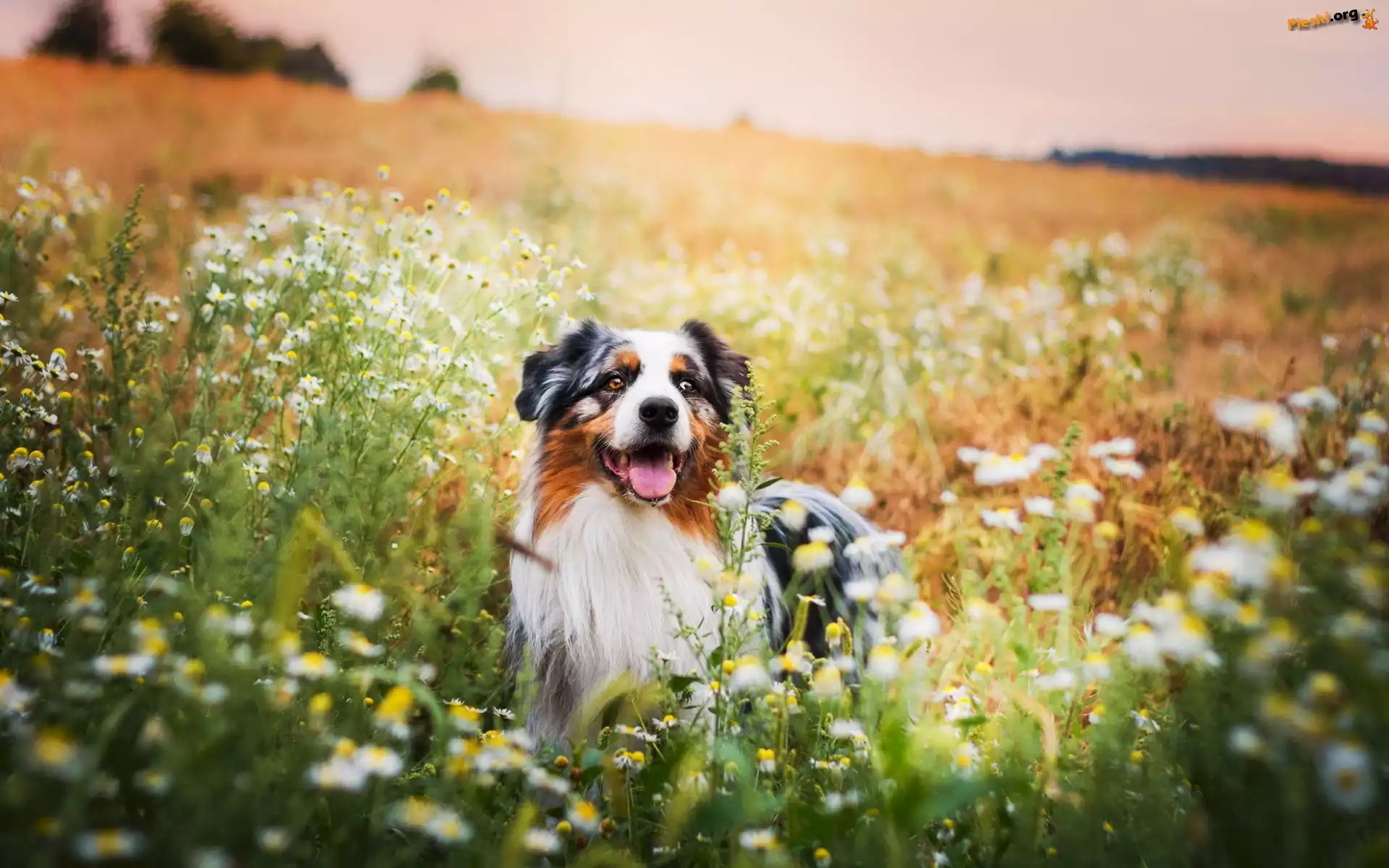 Owczarek australijski, Australian shepherd, Łąka