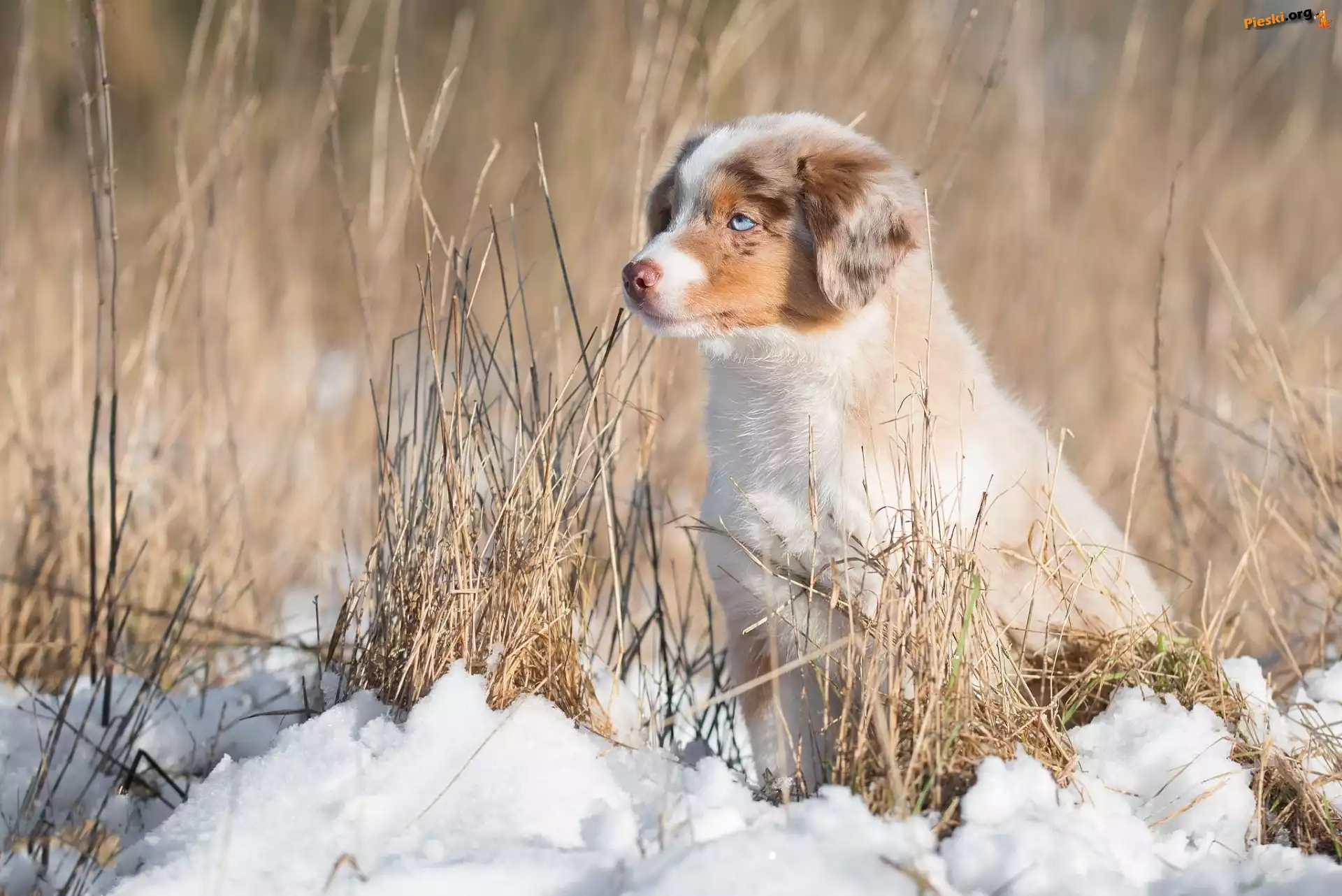 Owczarek australijski, Pies, Szczeniak, Trawa, Pieski