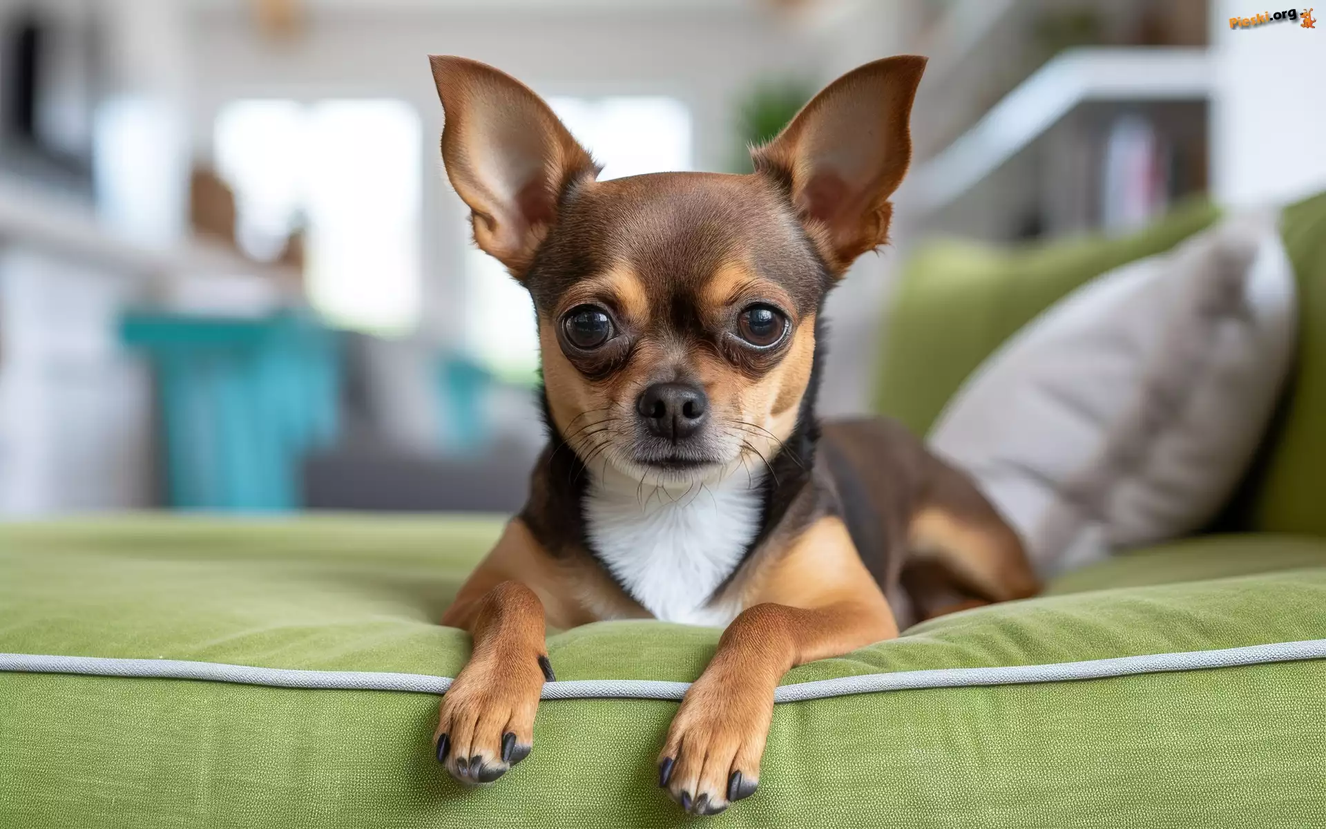 Zielona, Grafika Chihuahua krótkowłosa, Chihuahua krótkowłosa, Kanapa, Pies