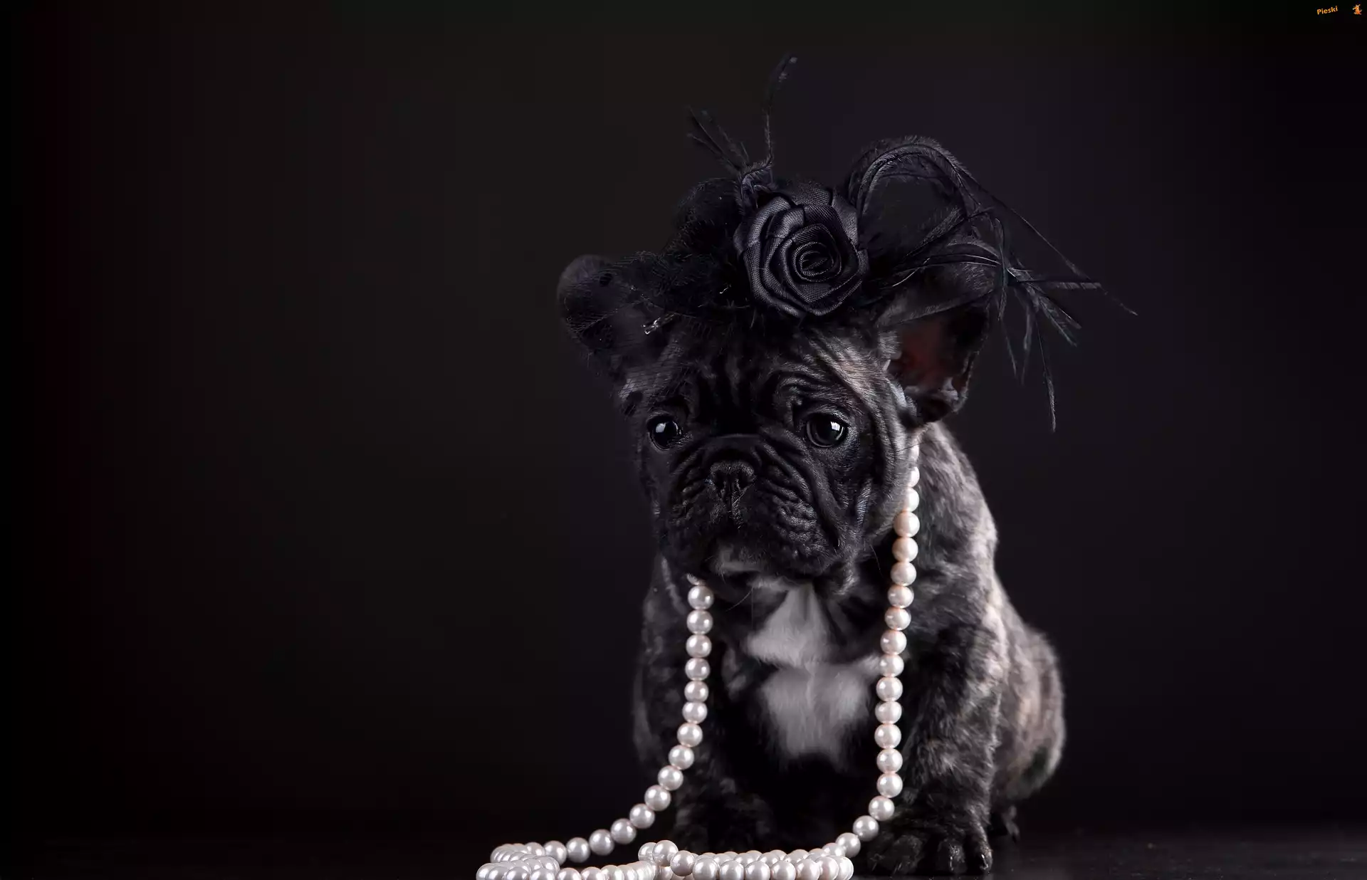 Pies , Sztuczne , Perły, Buldog, Francuski, Kwiaty, Pieski