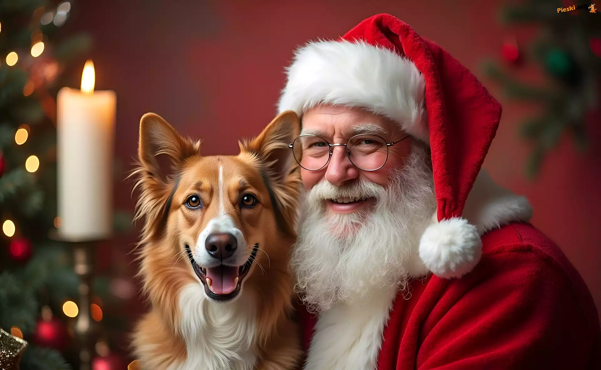 Okulary, Uśmiech, Święty, Pies, Czapka, Mikołaj