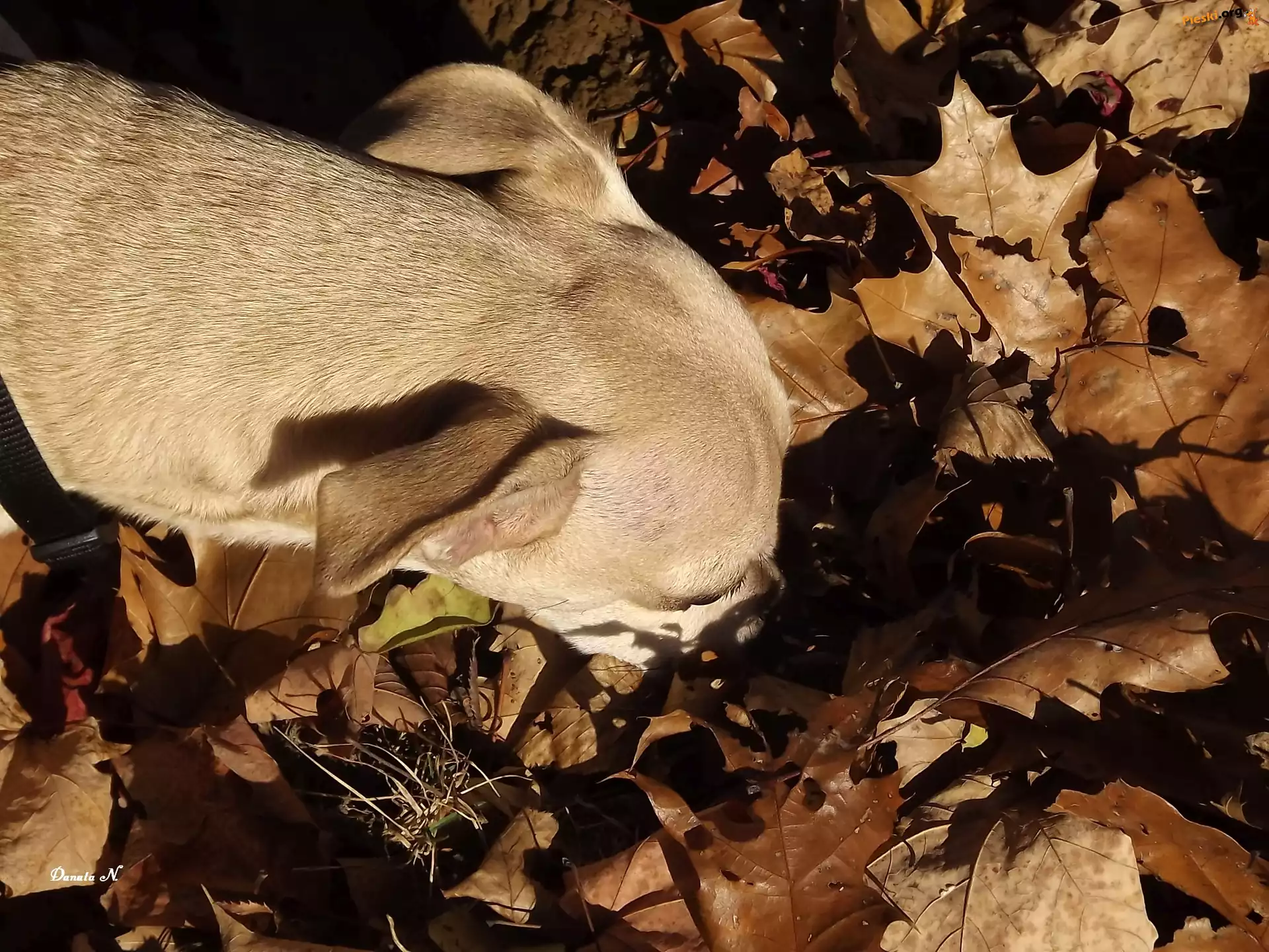 Pies, Jesienne, Liście, Chihuahua, Mordka, Park, Pieski