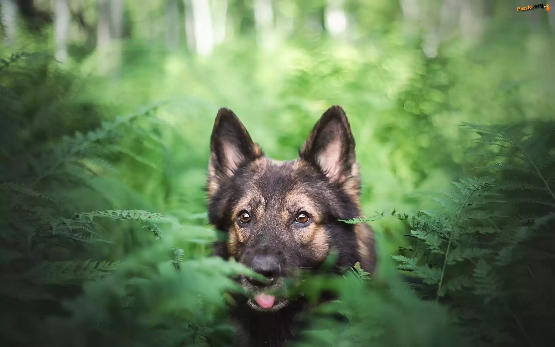 Pies, Owczarek niemiecki, Paprocie, Pieski