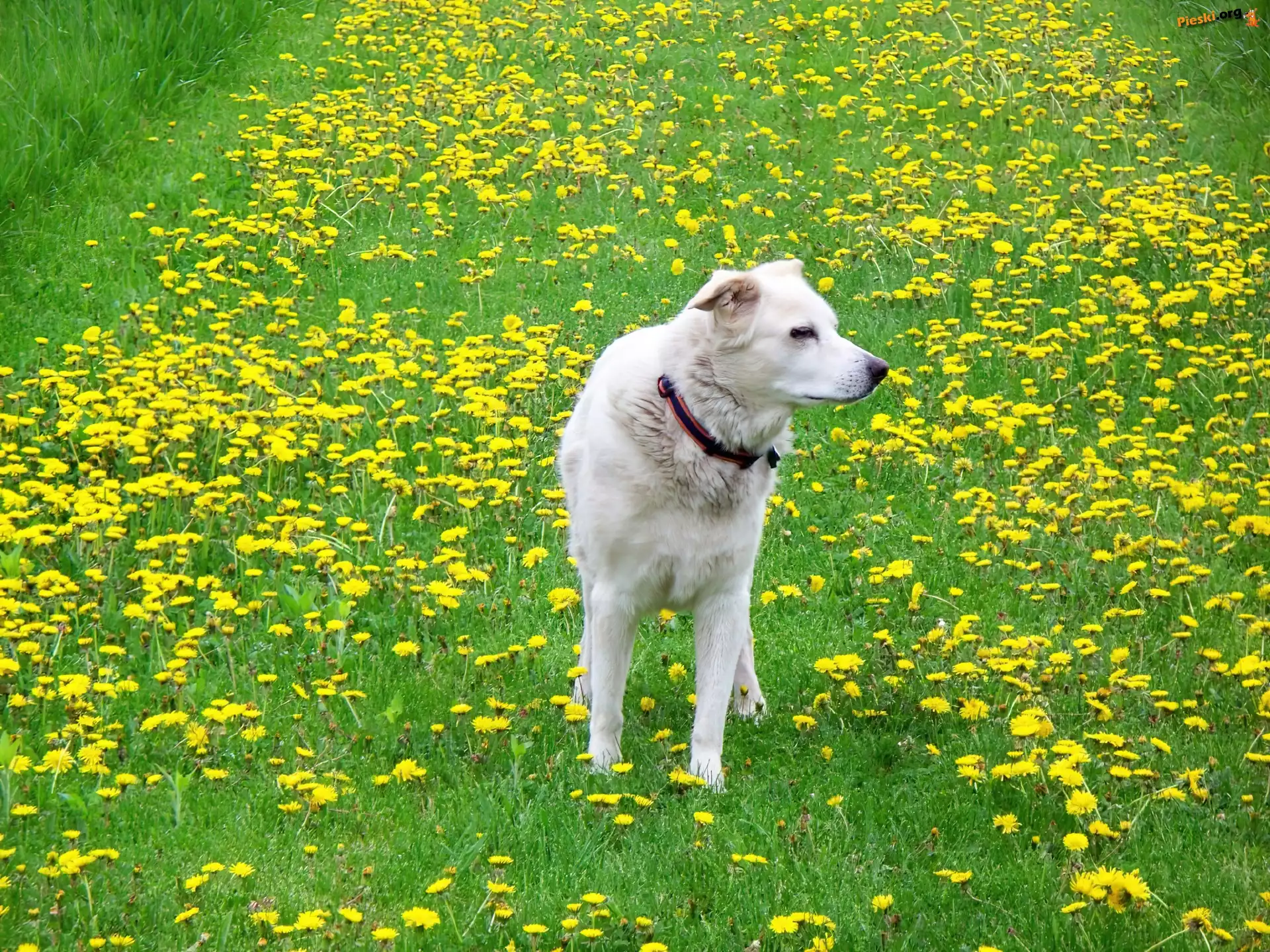 Łąka, Biały, Piesek, Mlecze