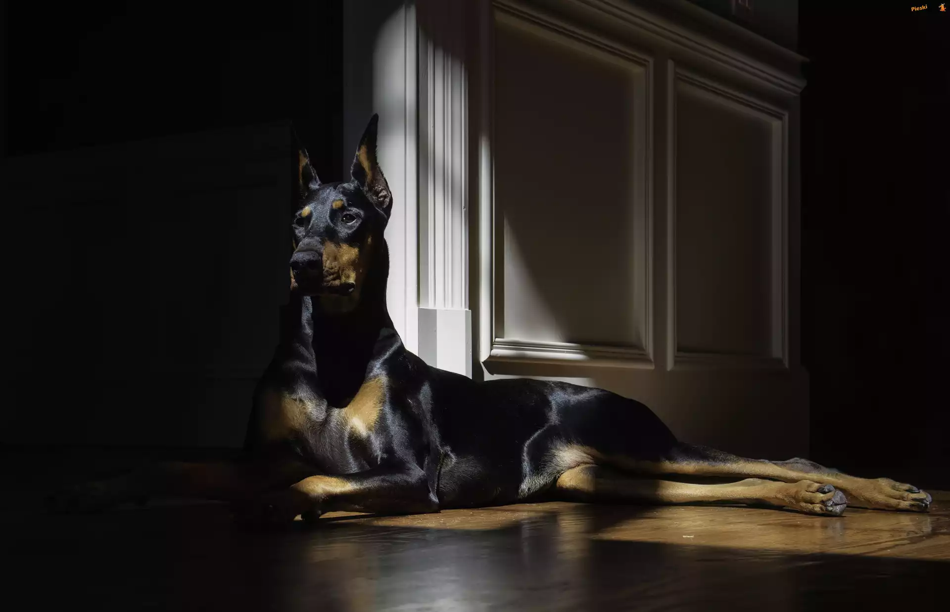 Pokój, Doberman, Pies, Światło, Pieski
