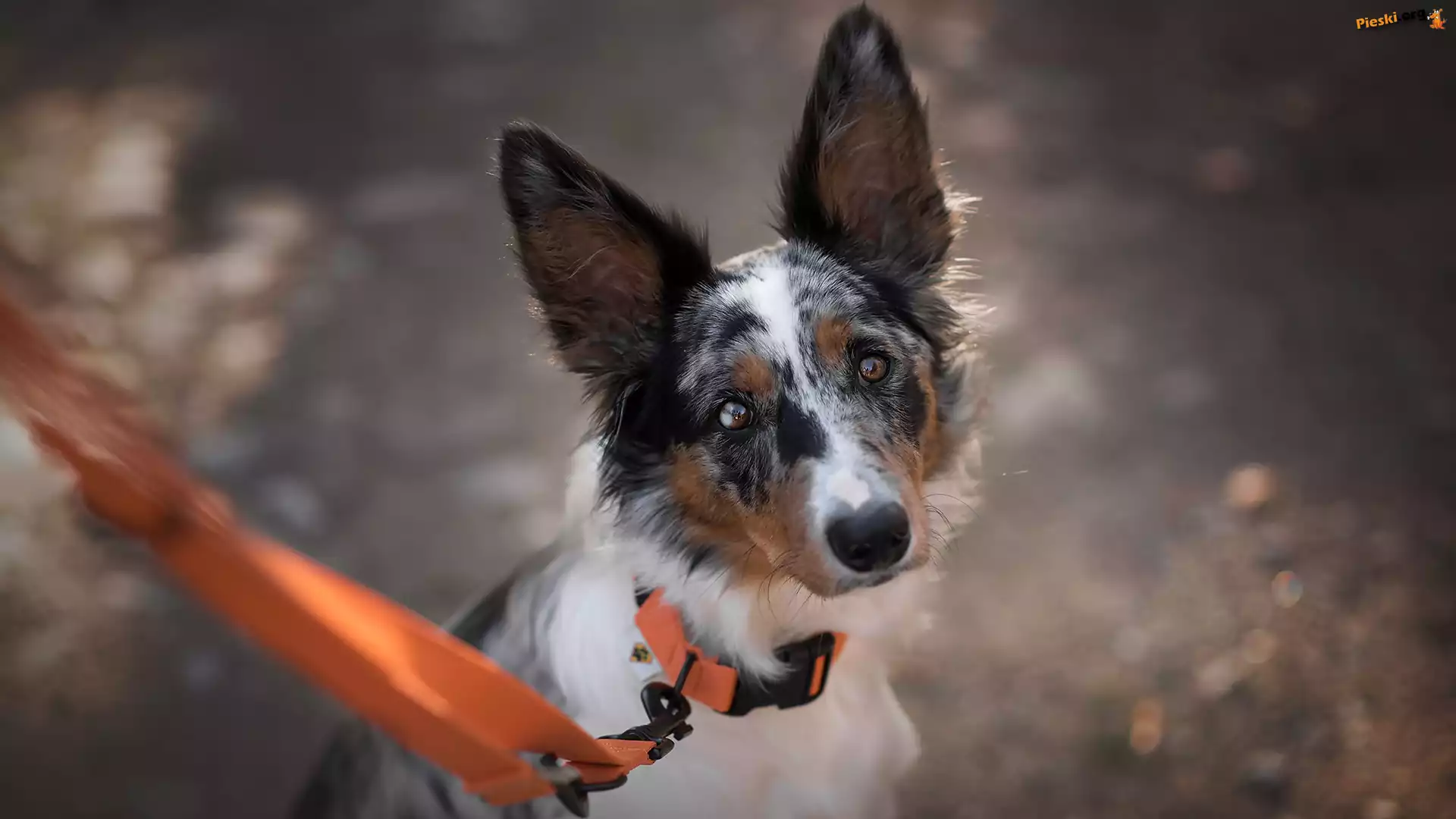Pomarańczowa, Border collie, Pies, Mordka, Smycz, Pieski