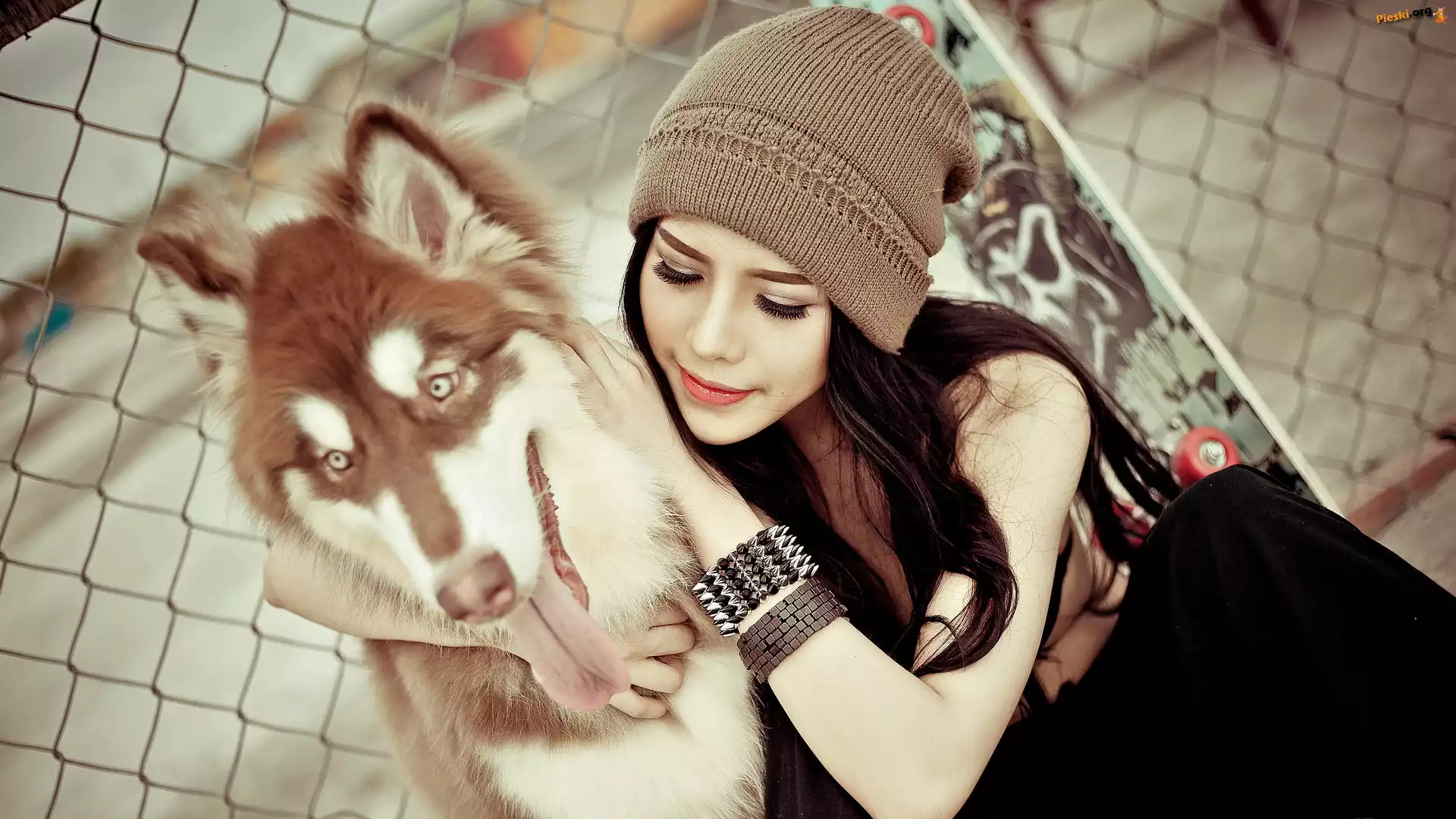 Przyjaciel, Makijaż, Dziewczyna, Biżuteria, Husky, Pieski