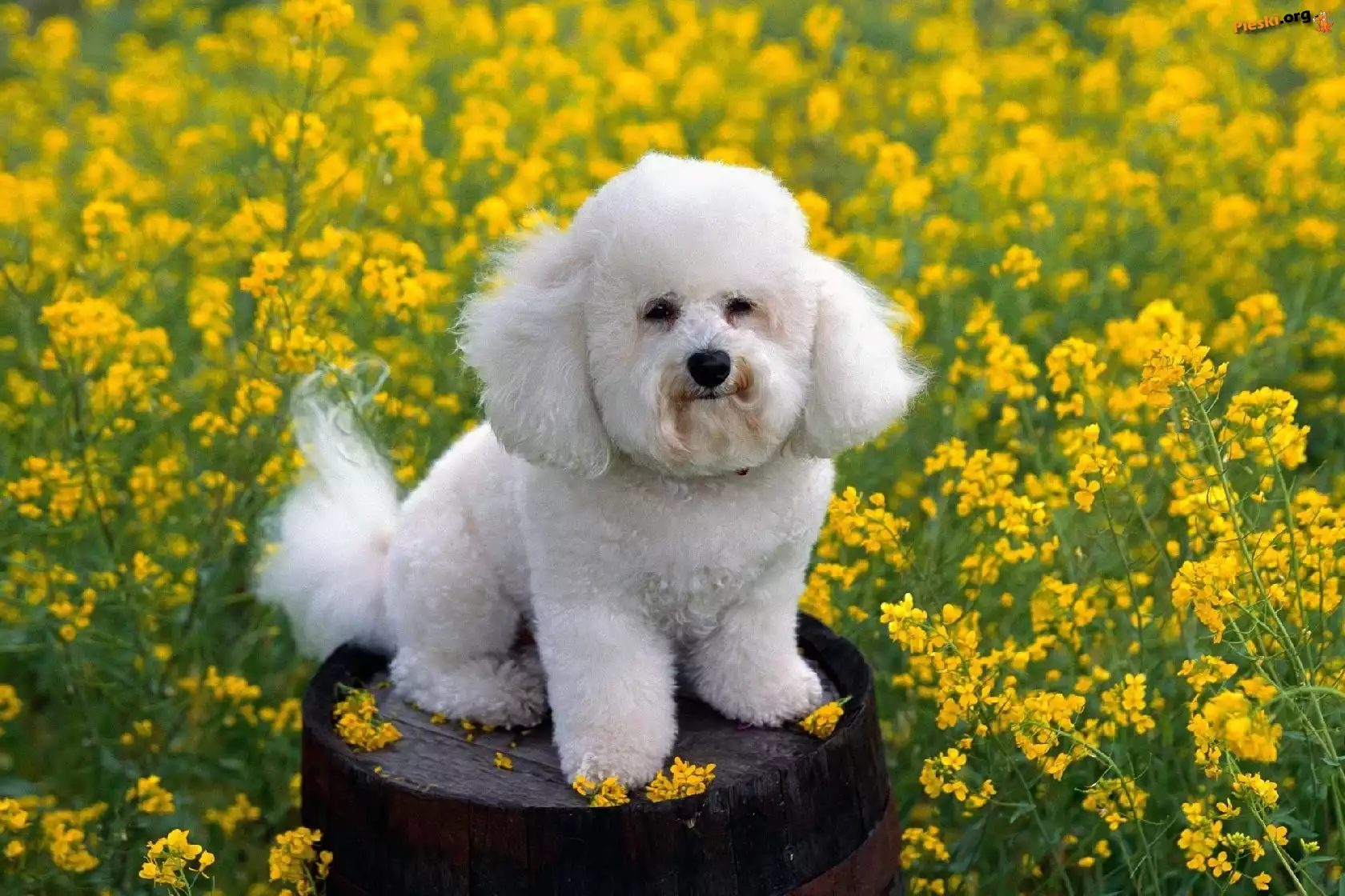 Żółte, Biały, Pudelek, Kwiaty, Pieski