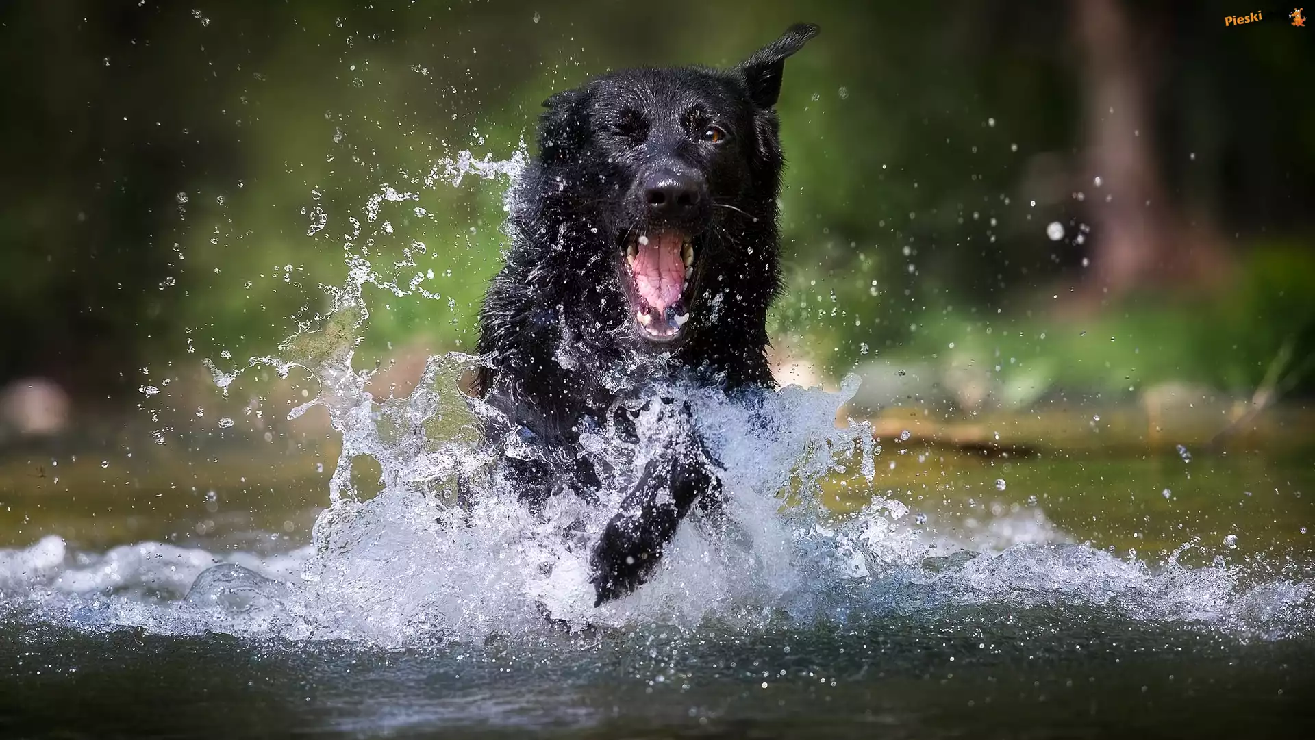 Rozbryzgująca, Czarny owczarek niemiecki, Pies, Woda, Pieski