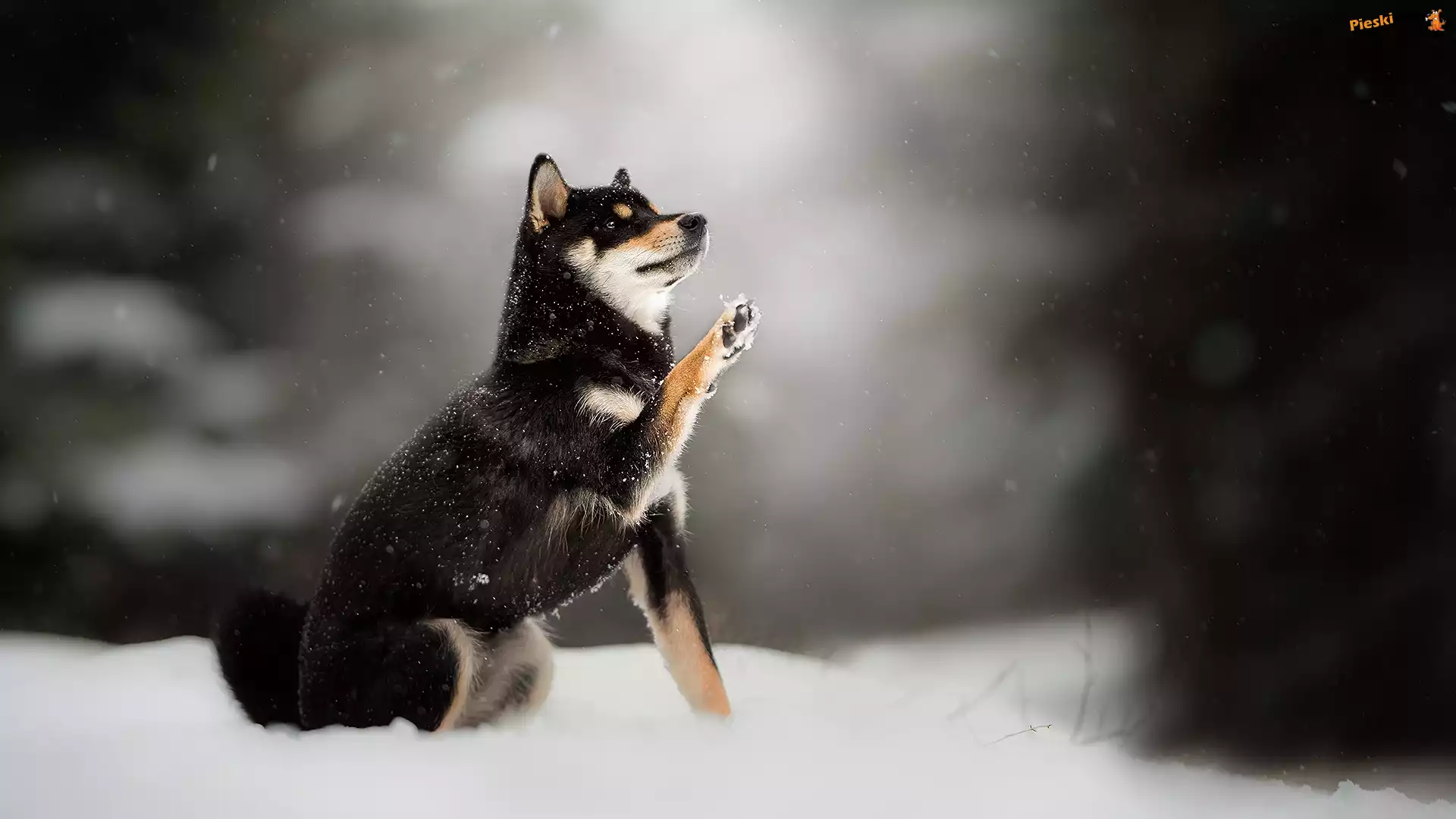 Rozmyte, Shiba inu, Pies, Śnieg, Tło, Pieski