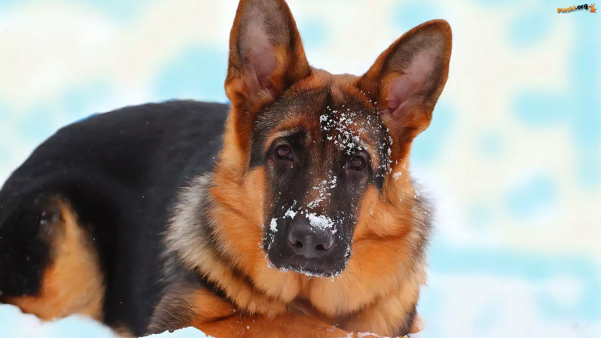 Pies, Smutek, Śnieg, Mordka, Owczarek niemiecki, Oczy, Pieski