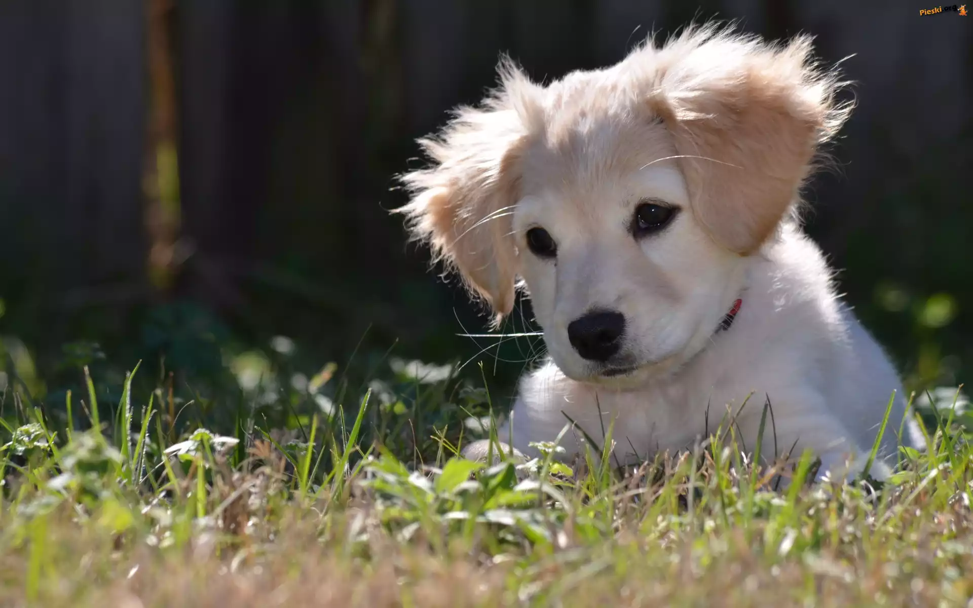 Trawa, Biały, Szczeniaczek, Golden Retriever