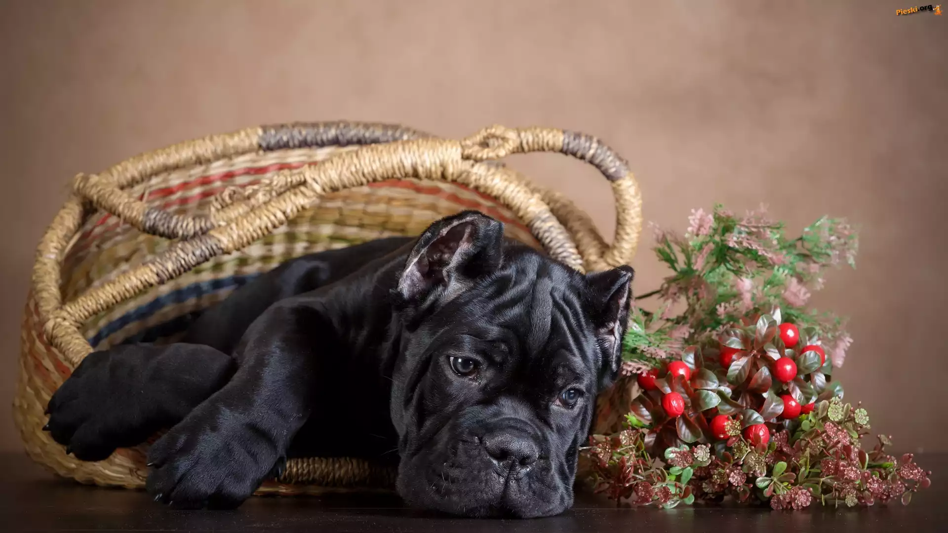 Szczeniak, Pies, Czarny, Cane Corso, Koszyk