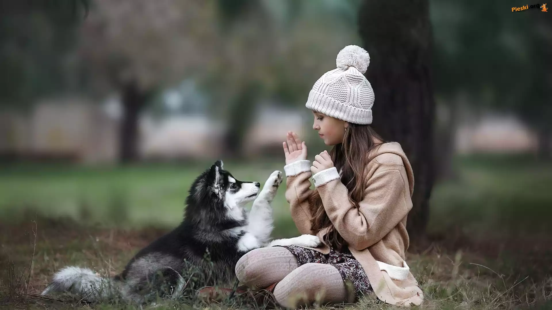 Szczeniak, Dziewczynka, Pies, Husky, Pieski