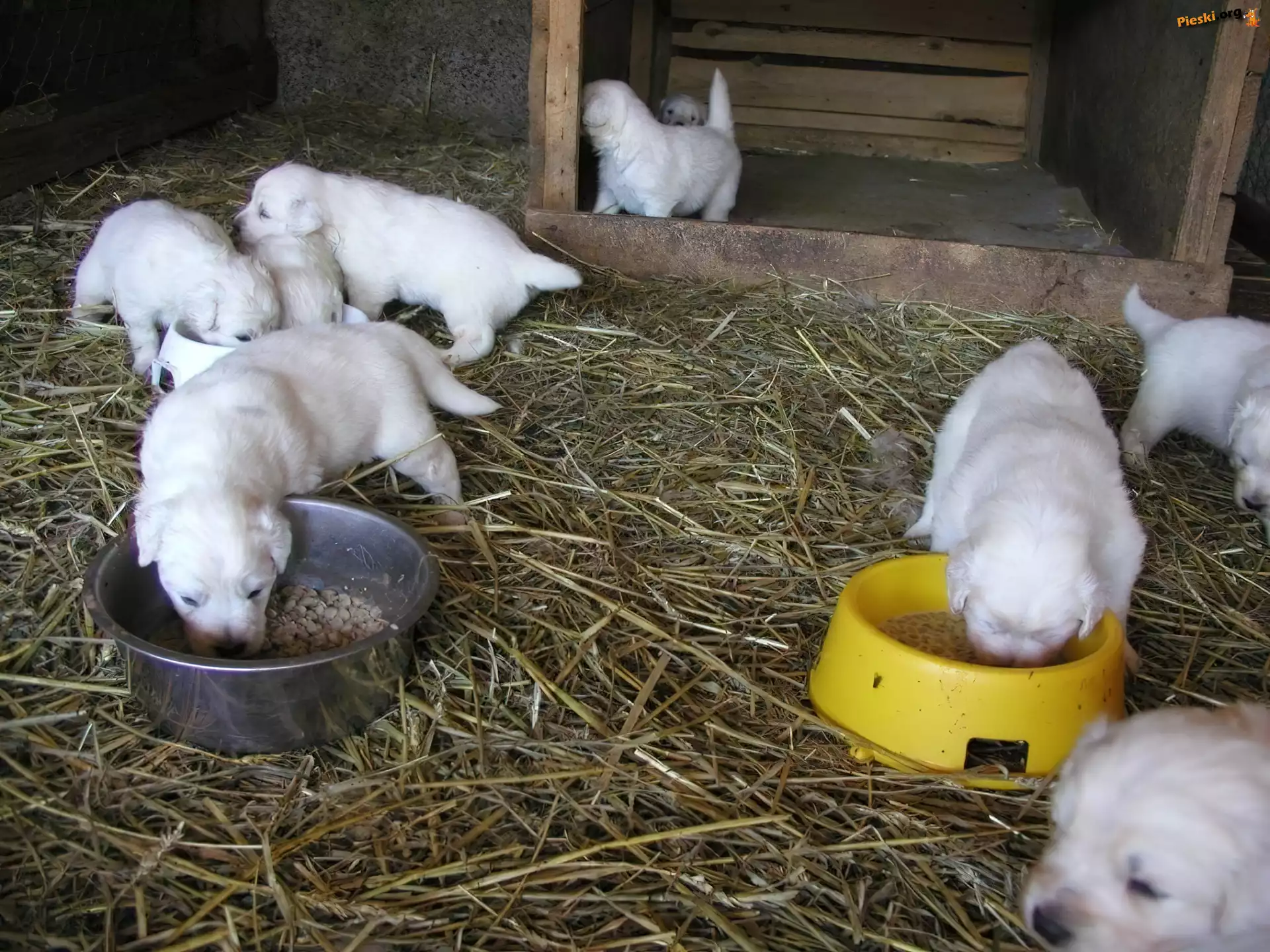 szczeniaki, Słowackie czuwacze, miski, Pieski
