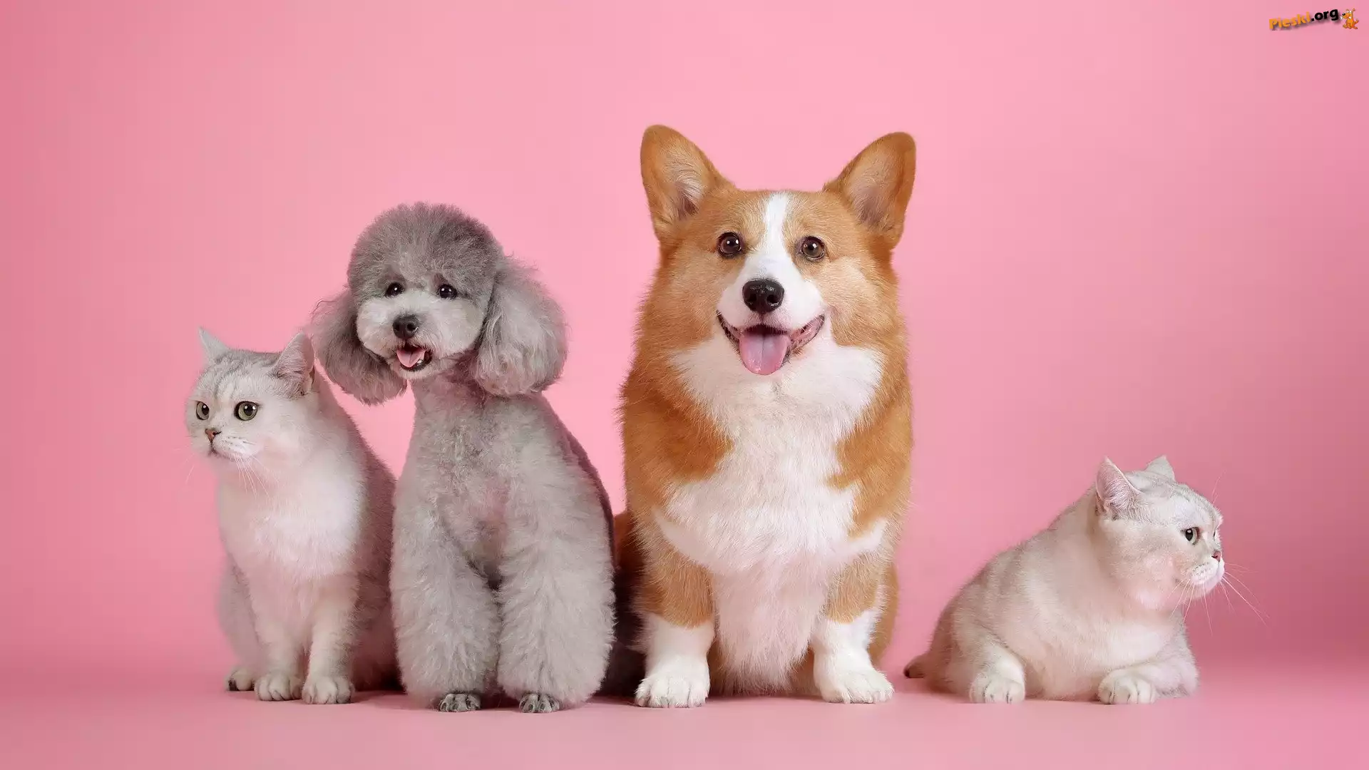 Psy, Pudel, Dwa, Welsh corgi pembroke, Koty