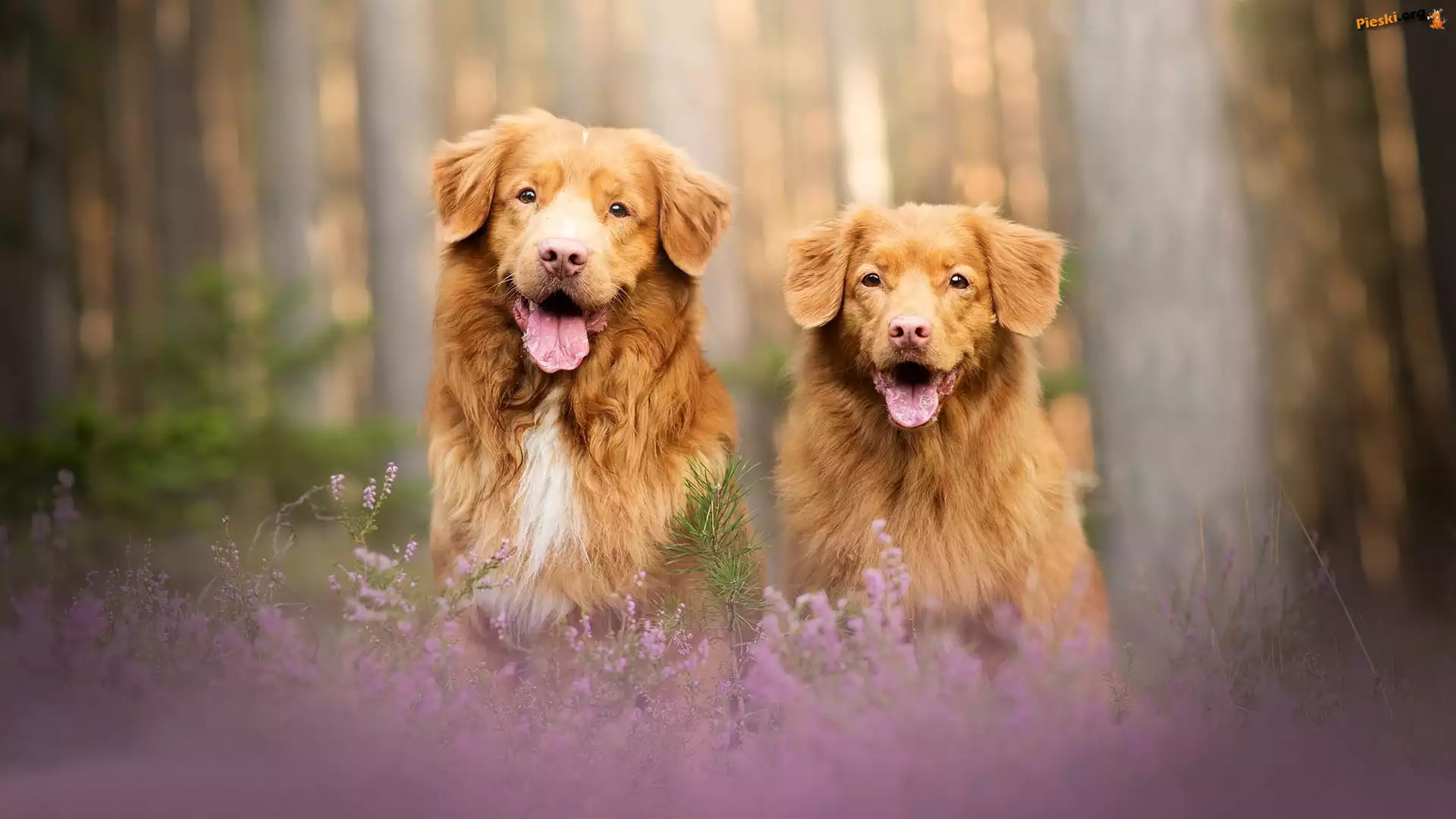Retriever z Nowej Szkocji, Dwa, Psy, Wrzosy, Pieski
